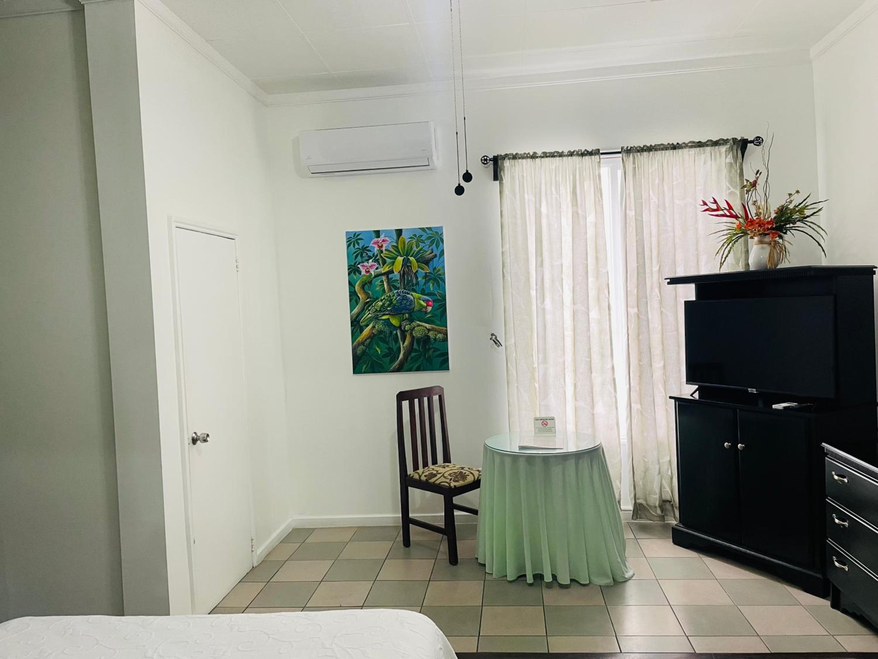 Step into the bright and airy rooms at Great House Inn that lead to a large verandah, providing a perfect spot to unwind. Each room features a cozy seating area, cable TV, and a convenient mini fridge. The well-equipped bathrooms come with complimentary toiletries and a hairdryer.