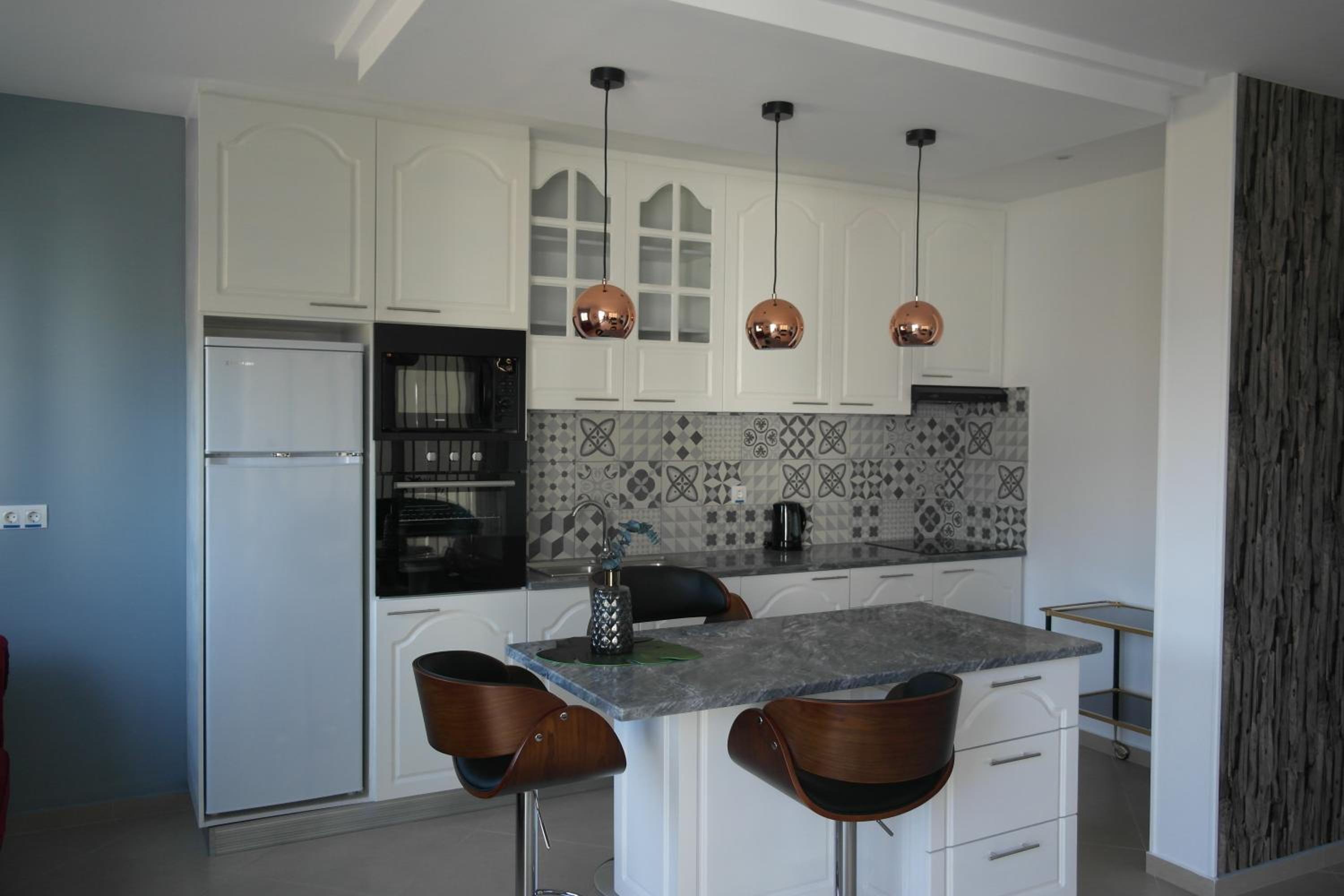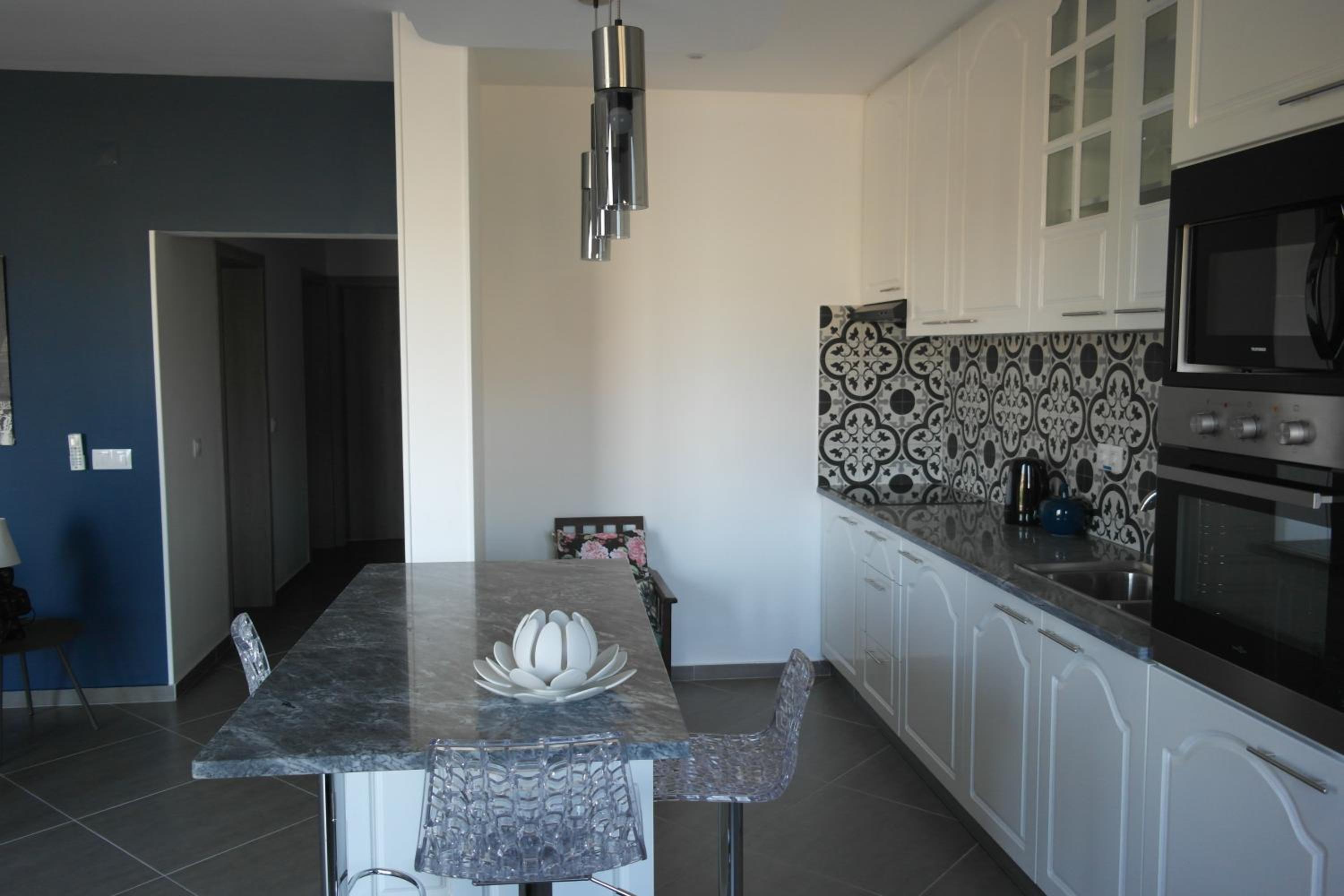 Sehr moderne und schöne, schicke Einrichtung mit viel Platz. Wir hatten zwar nicht das dritte Zimmer wie versprochen, daher schlief ein Kind im Zustellbett bei uns. Sauberes Hotel, auch wenn Betten nicht jeden Tag gemacht worden sind. Frühstück hervorragend. Hilfsbereites und freundliches Personal mit schlechten Englisch und Spanisch Kenntnissen. Kochen war unmöglich, es gab noch nicht einmal Töpfe und Pfannen. Zu wenig Geschirr für uns 5.