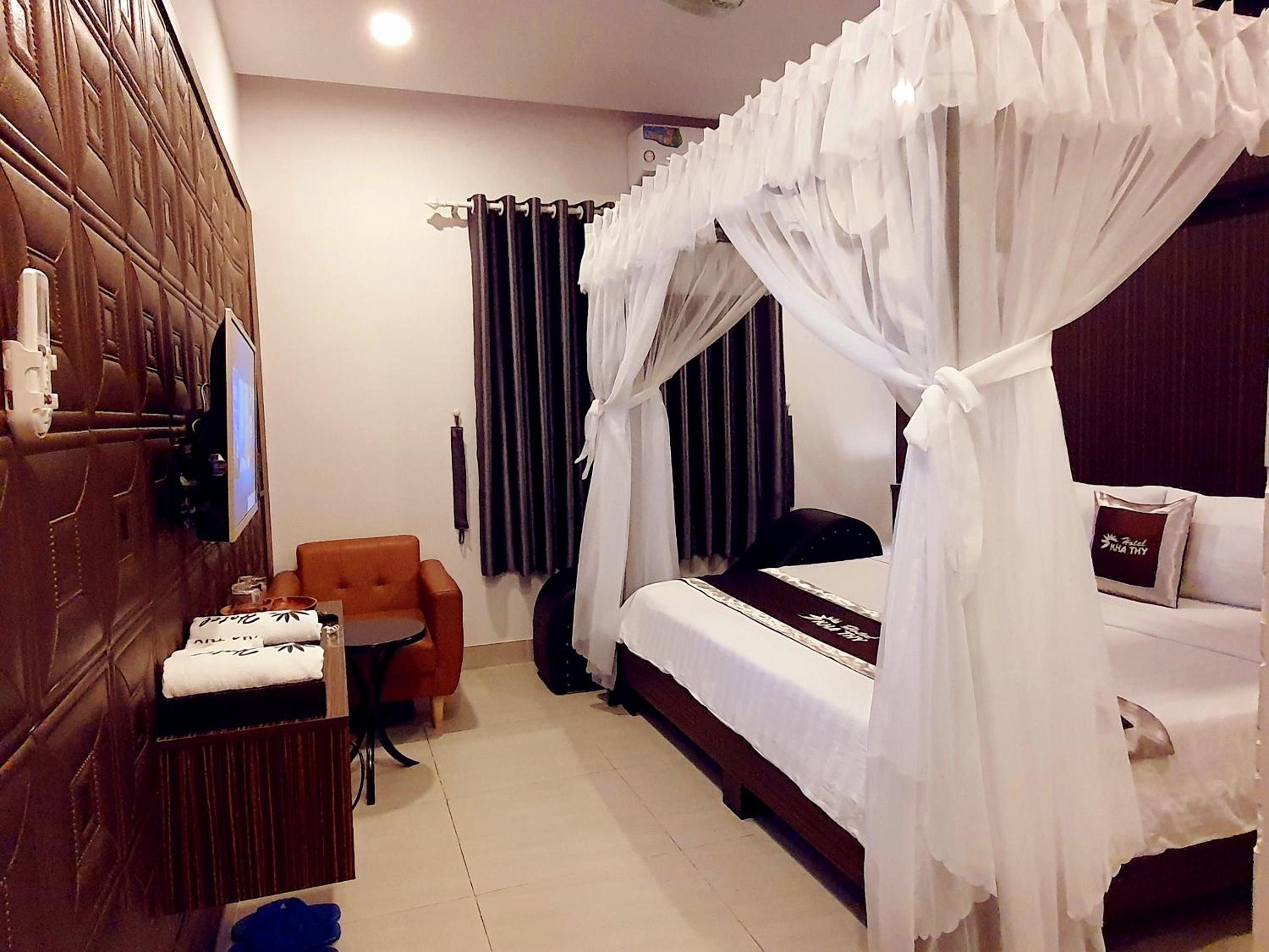 Each air-conditioned room at Kha Thy Hotel is equipped with modern amenities including free WiFi, a flat-screen TV, and a private bathroom. Some rooms even feature a charming balcony, providing guests with a relaxing spot to unwind after a day of sightseeing.