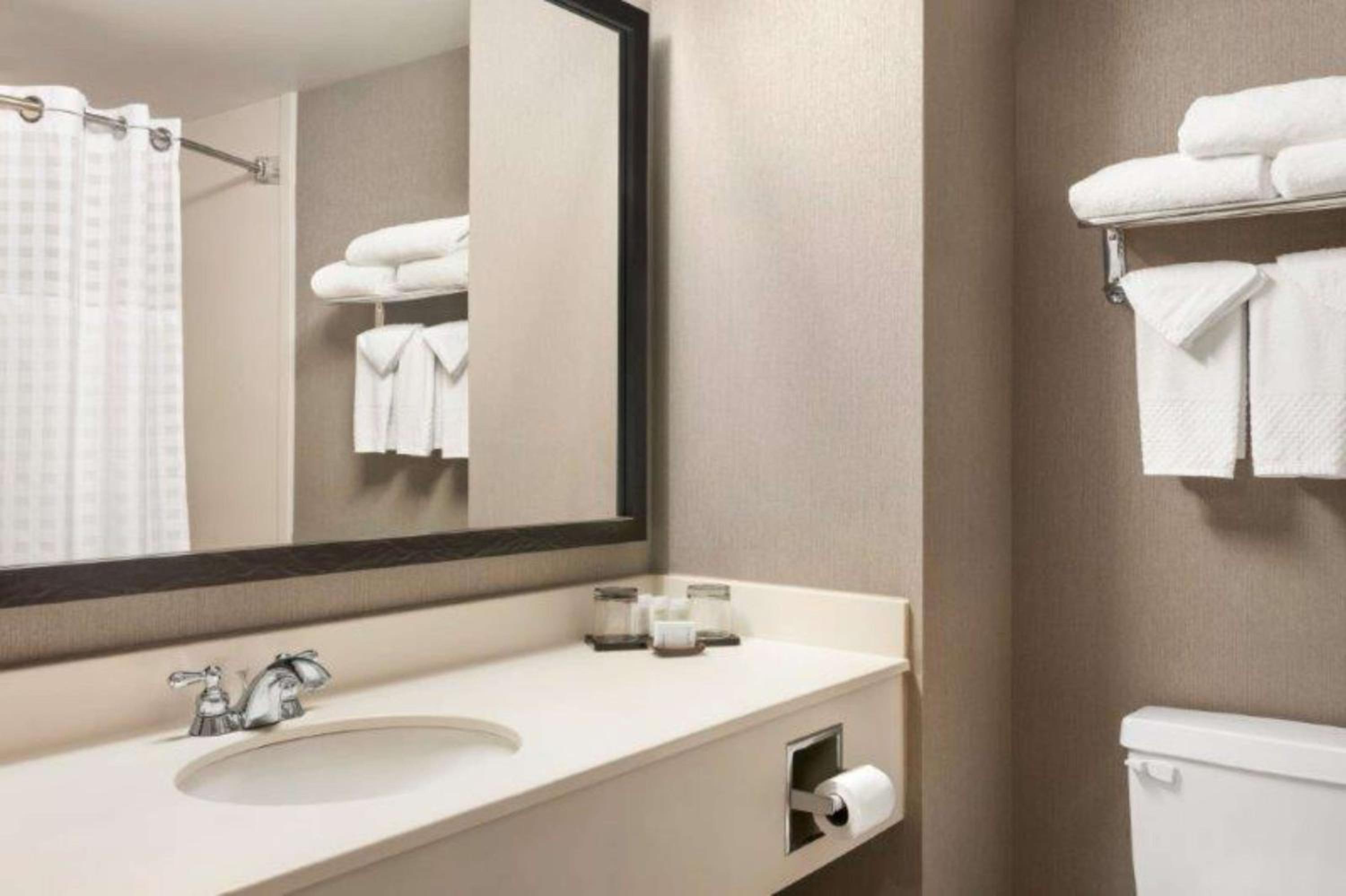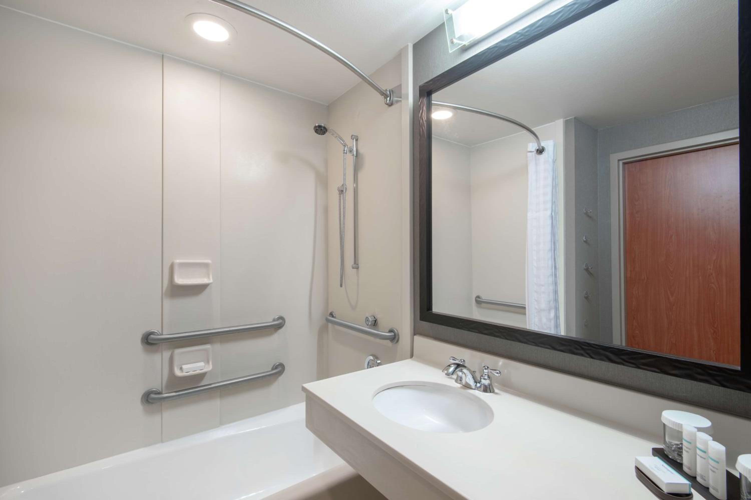 Super impressed at the free drink cards, the breakfast layout, and the friendliness of the staff. Blackout curtains are top notch. Water pressure was great in the shower. Loved seeing my name on the TVs when we walked in.