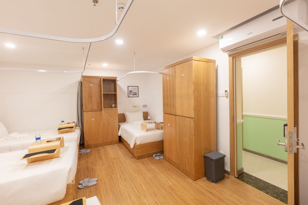 Nice hotel with green public area. Bed in dormitory room was cozy and comfortable. The room was clean.