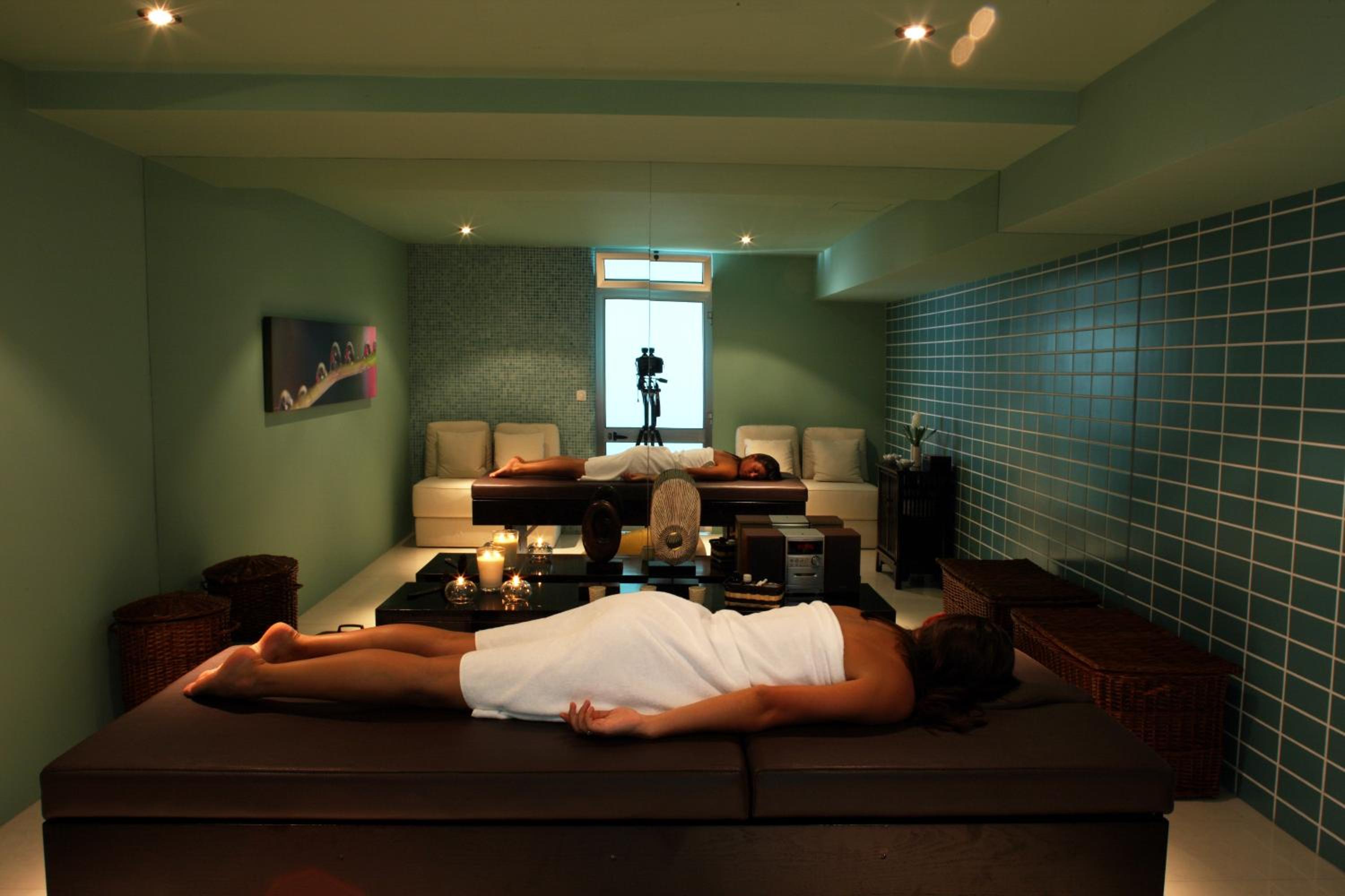 Indulge in the modern amenities of this hotel, including flat-screen TVs, free Wi-Fi, indoor and outdoor pools, and massage treatments. Some rooms even feature a separate seating area and dining furniture for added comfort during your stay.