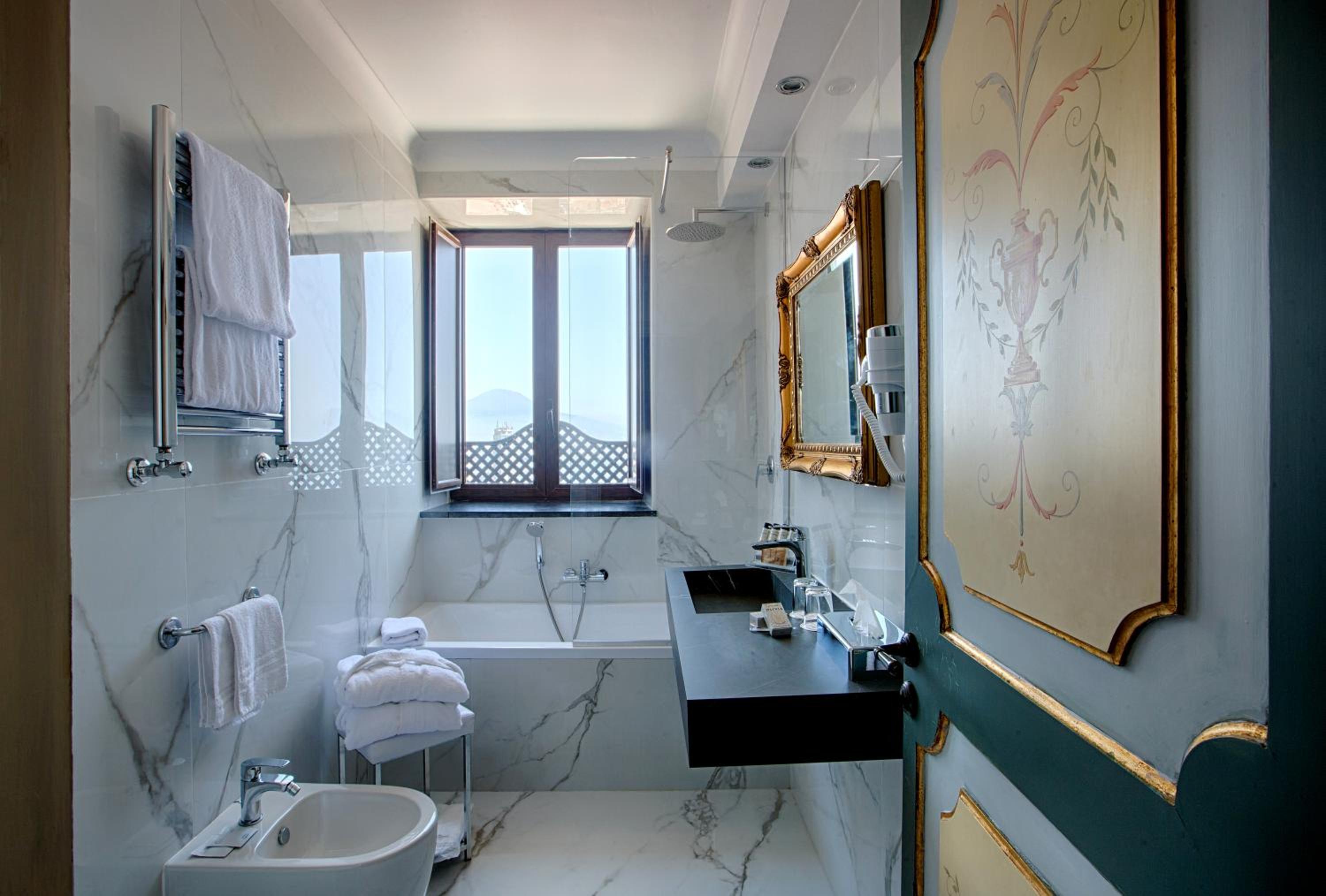 la vue exceptionelle sur la ville de Naples et le Vesuve. Les chambres (nous étions en suite junior) la propreté de la salle de bain, la disponibilité du personnel.