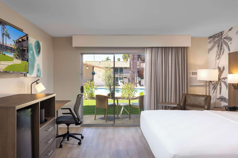 The room looked newly remodeled and was very nice. The bed and pillows were super comfortable! Nice view into the courtyard and quiet. Ample parking!