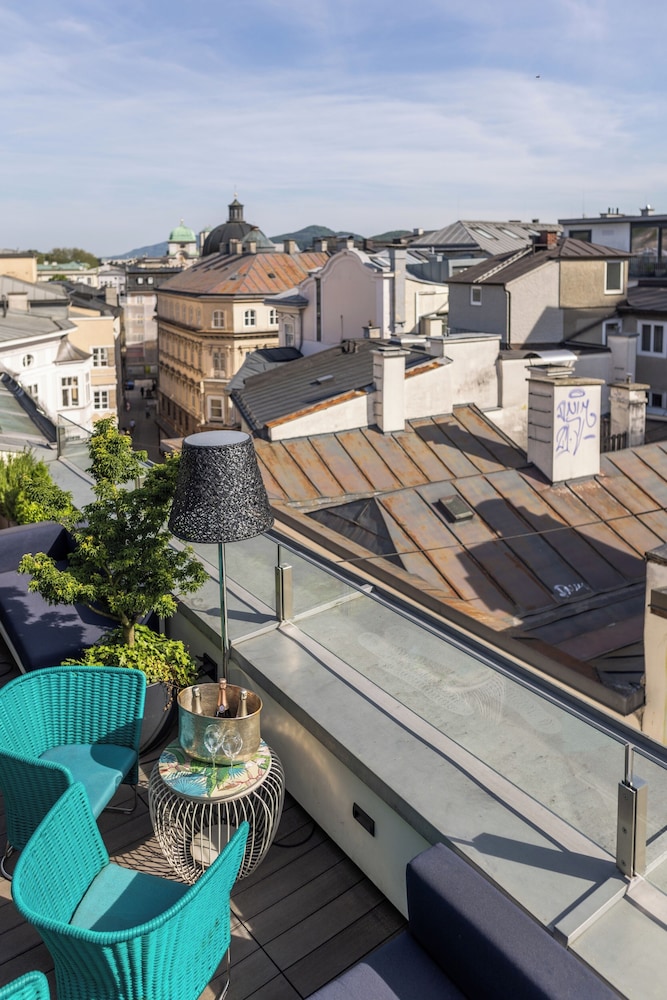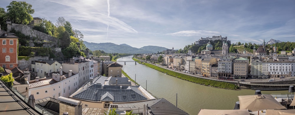 This hotel is only a few steps away from the old town. Its rooftop terrace, for breakfast or evening bar, is without rivals in Salzburg.