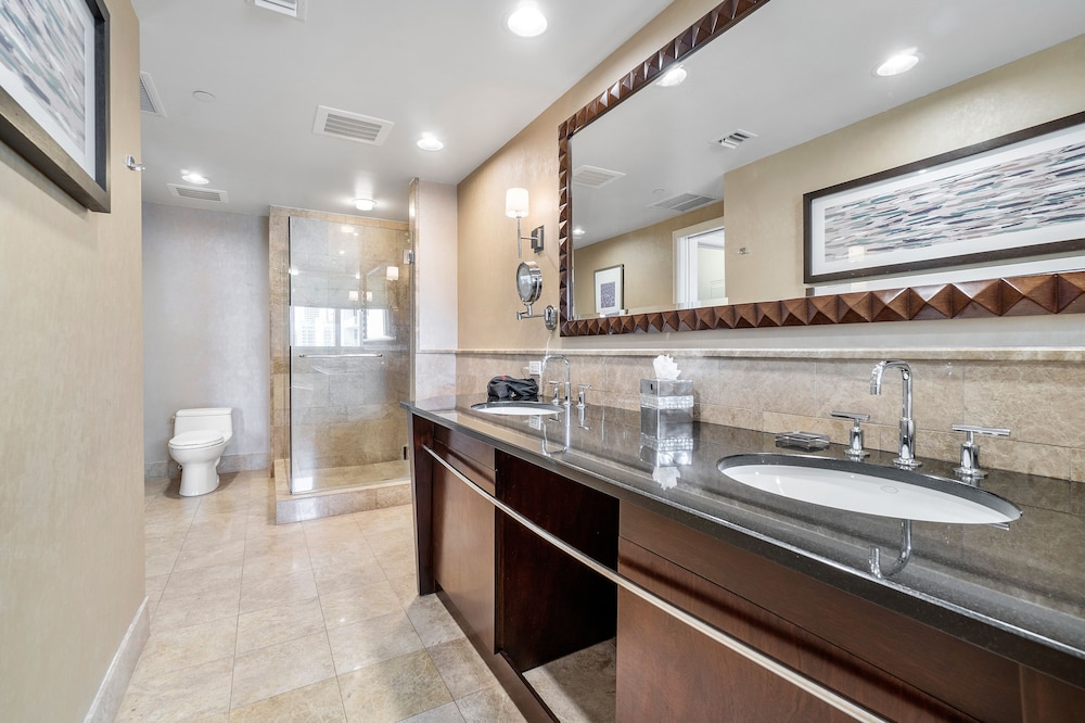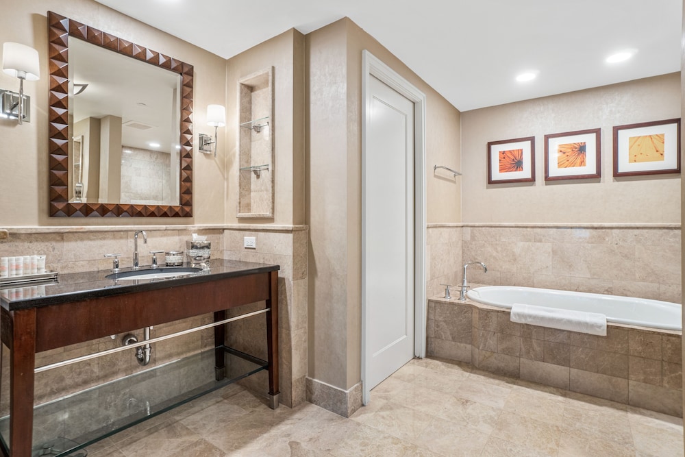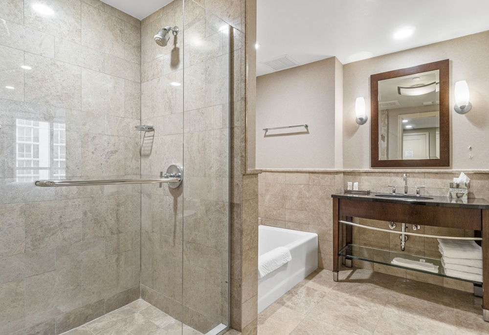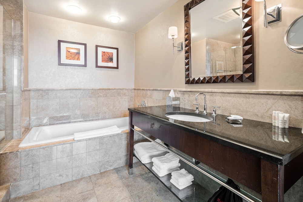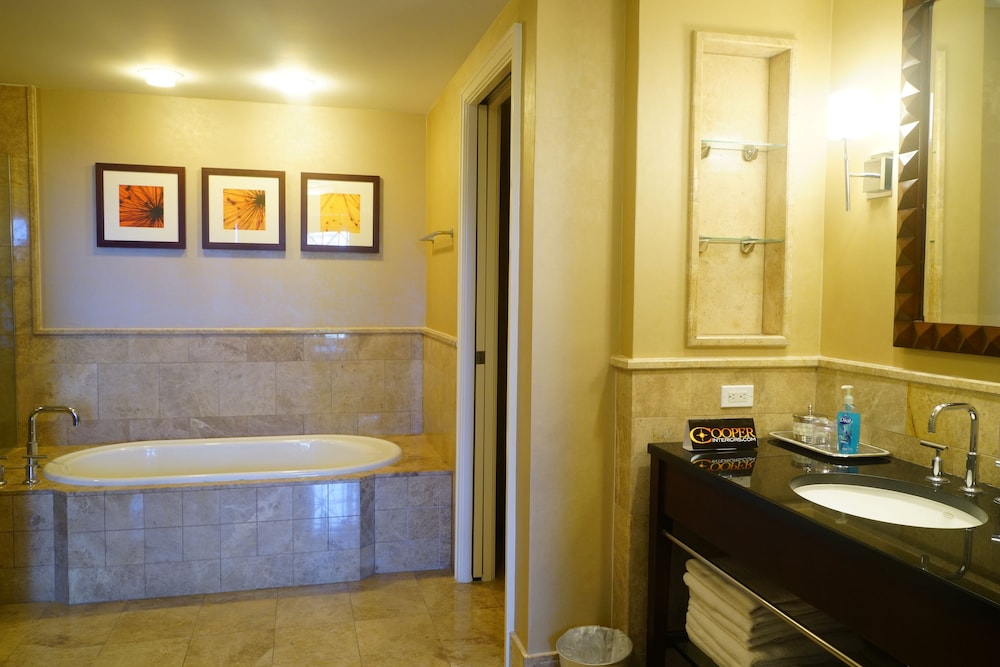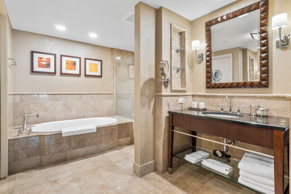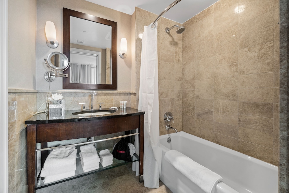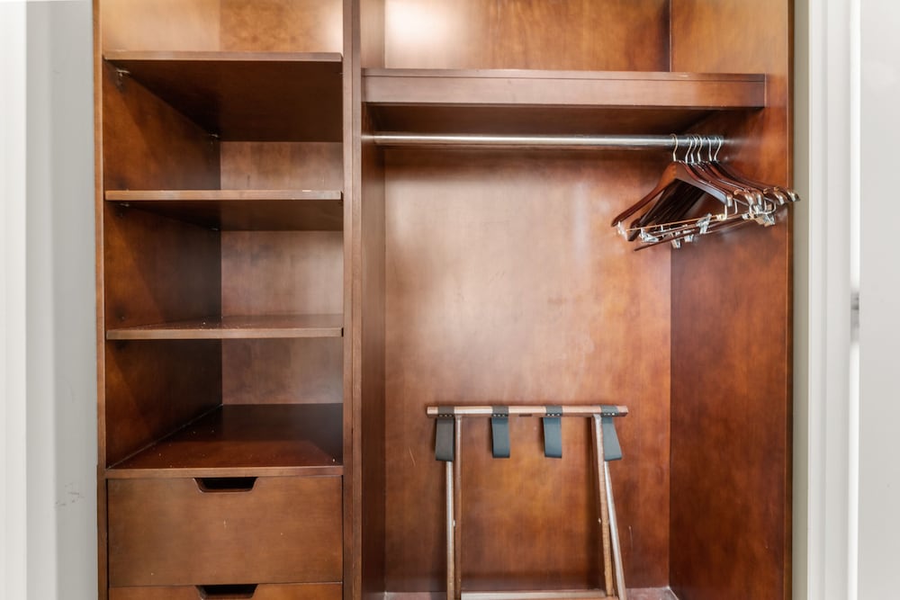 The room looked clean and nice at first glance but as we settled in we realized it is in need of deep cleaning. There were stains on the couch/sofa bed, throw pillows and the sofa bed itself was unstable and didn’t set up properly. As we were setting it up we realized we didn’t have any sheets for it (there were only itchy blankets and comforters available). When we called to ask for sheets and to inform them about the sofa bed, the gentleman was very defensive saying “no sofa beds are comfortable” and since we bought the least expensive room (keep in mind we booked the “luxury king suite”) that we shouldn’t expect anything else but that he’d be glad to upgrade us at our expense. The room wasn’t very neat. Lamp shades were tilted, shelf items were pushed to the side and not placed very neat. All in all it was terrible. Since this property shares the property with Marriott, it seems nice at first but it’s definitely not up to Marriott standards for hospitality, cleanliness or comfort. Spend the extra $$$$ per night to get what you’re expecting.