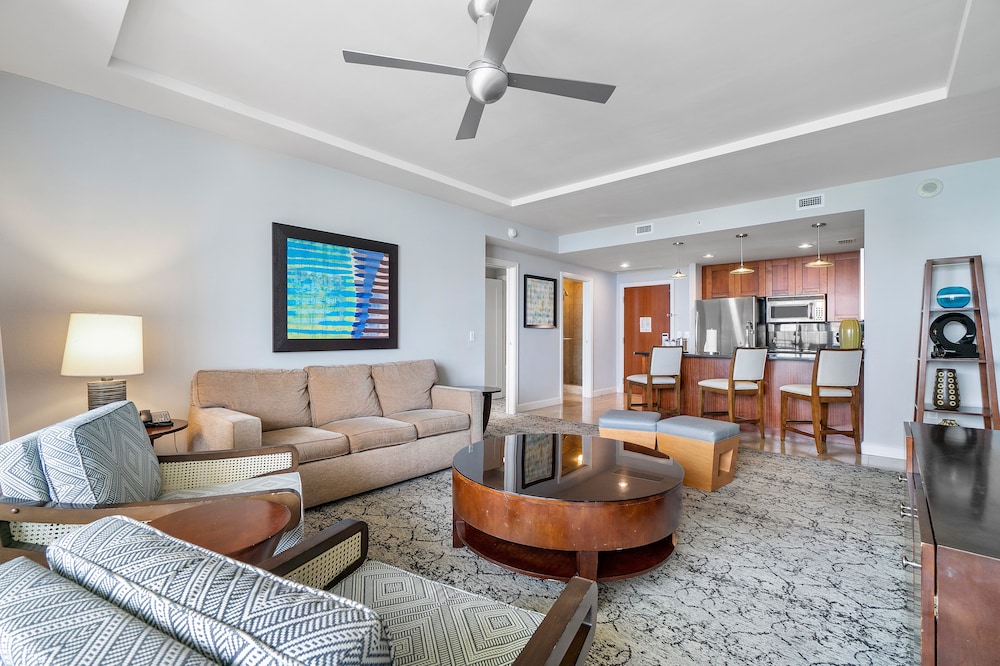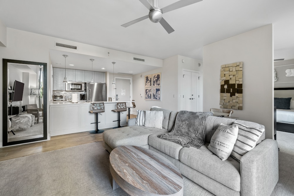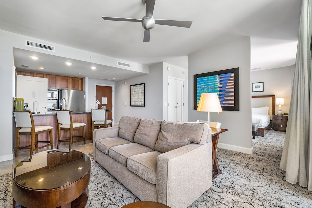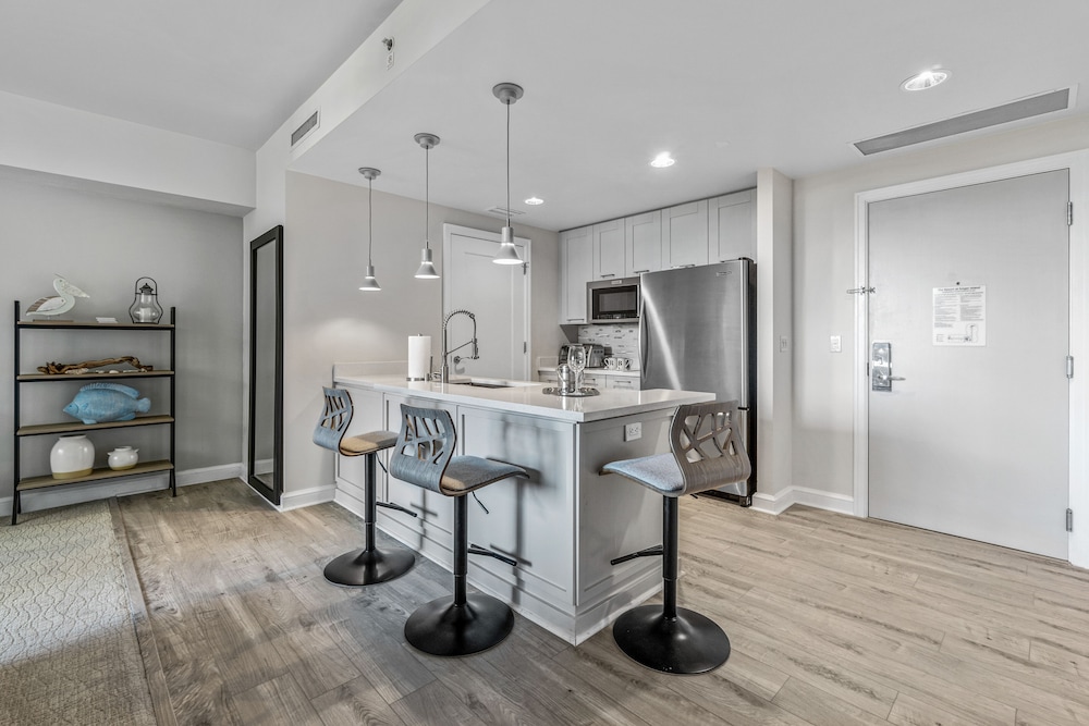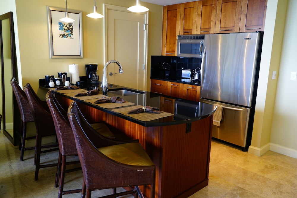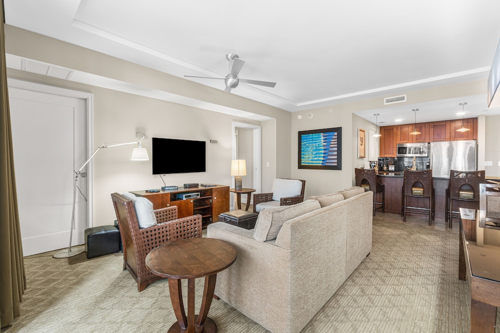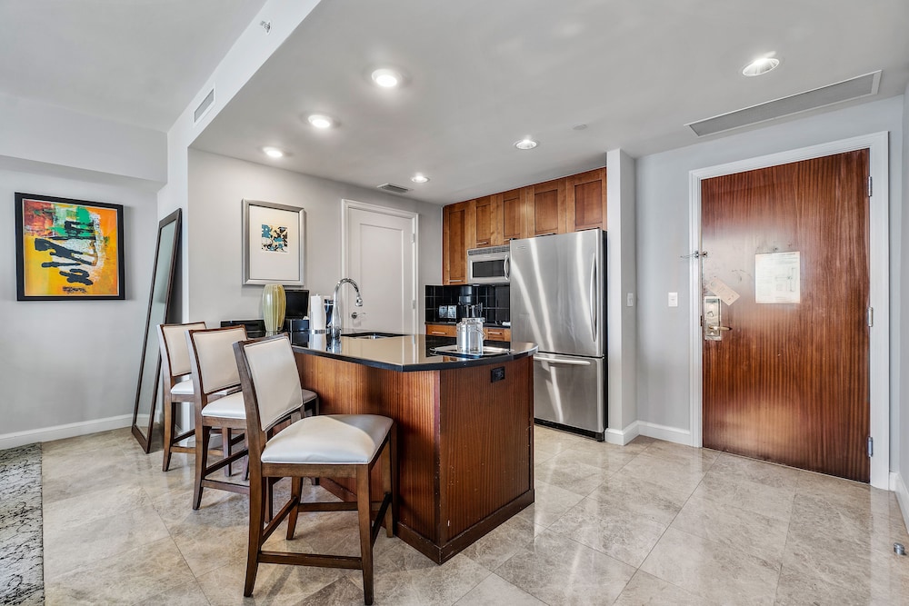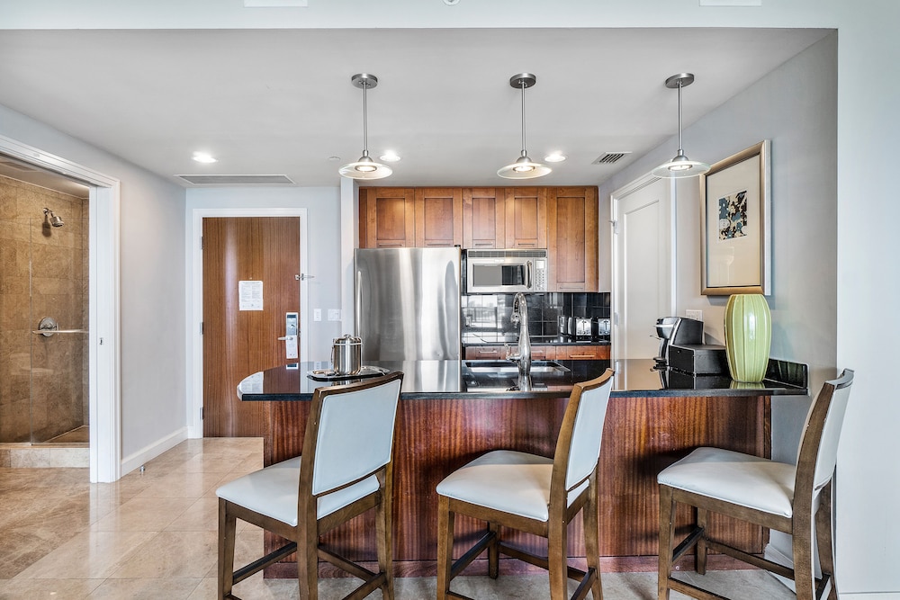 Retreat to one of our 46 elegantly appointed guest rooms featuring kitchens, premium bedding, and private balconies, all equipped with 50-inch Smart televisions for your comfort.