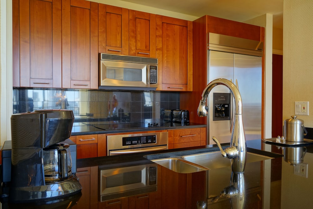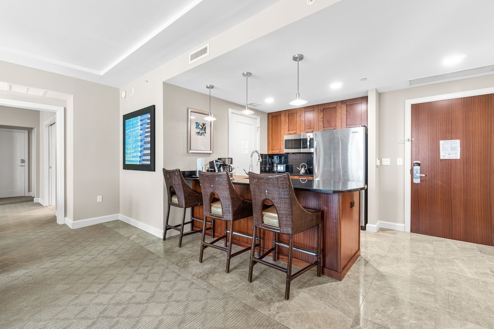 This is connected to the Marriott singer island but it is not managed by the Marriott it is managed by a company that is not on site and if you have a pro they don’t answer the phone we checked in and not more than being in the room for 5 minutes a huge cockroach ran by it came from behind the refrigerator within ten min of being there we seen 7 more as we were trying to kill them more kept running around it was a horror movie!!! We went to the front desk and she said because Marriott dont manage that unit that she can’t help and have me a number to call I called the number 20 times to ask for a new room no response!!! At 4 am with no sleep, grossed out by roaches all over the place and no help we left and drove 4 hours. Back to Orlando. I videoed the roaches made sure in the video you can see it is that unit made sure it is time stamped and dated so the manager could see all the roaches next day I email Expedia for help and thry finally got a response from the manager that says there is no cockroach’s in his place and the cleaners found nothing he refused to look at my video and pics that clearly show them running around . But he refused a refund and denied any roaches but won’t acknowledge my video of the proof