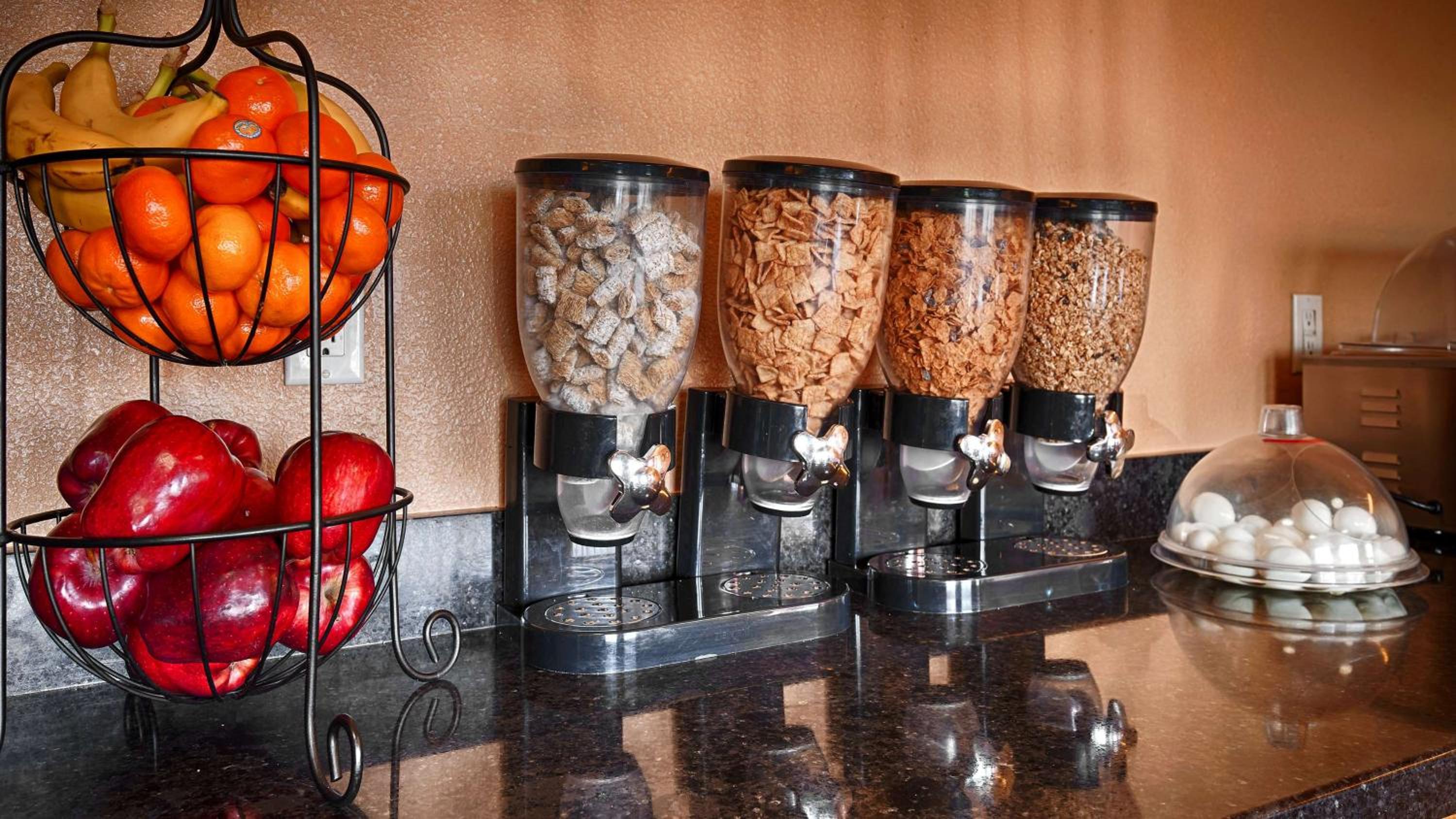 Excellent breakfast! Crispy sausage links, nutella packets, green chile sauce, cups with fresh melon in addition to whole apples & oranges. Small fenced & gated area available for letting dog safely off-leash. Beds were very comfortable.