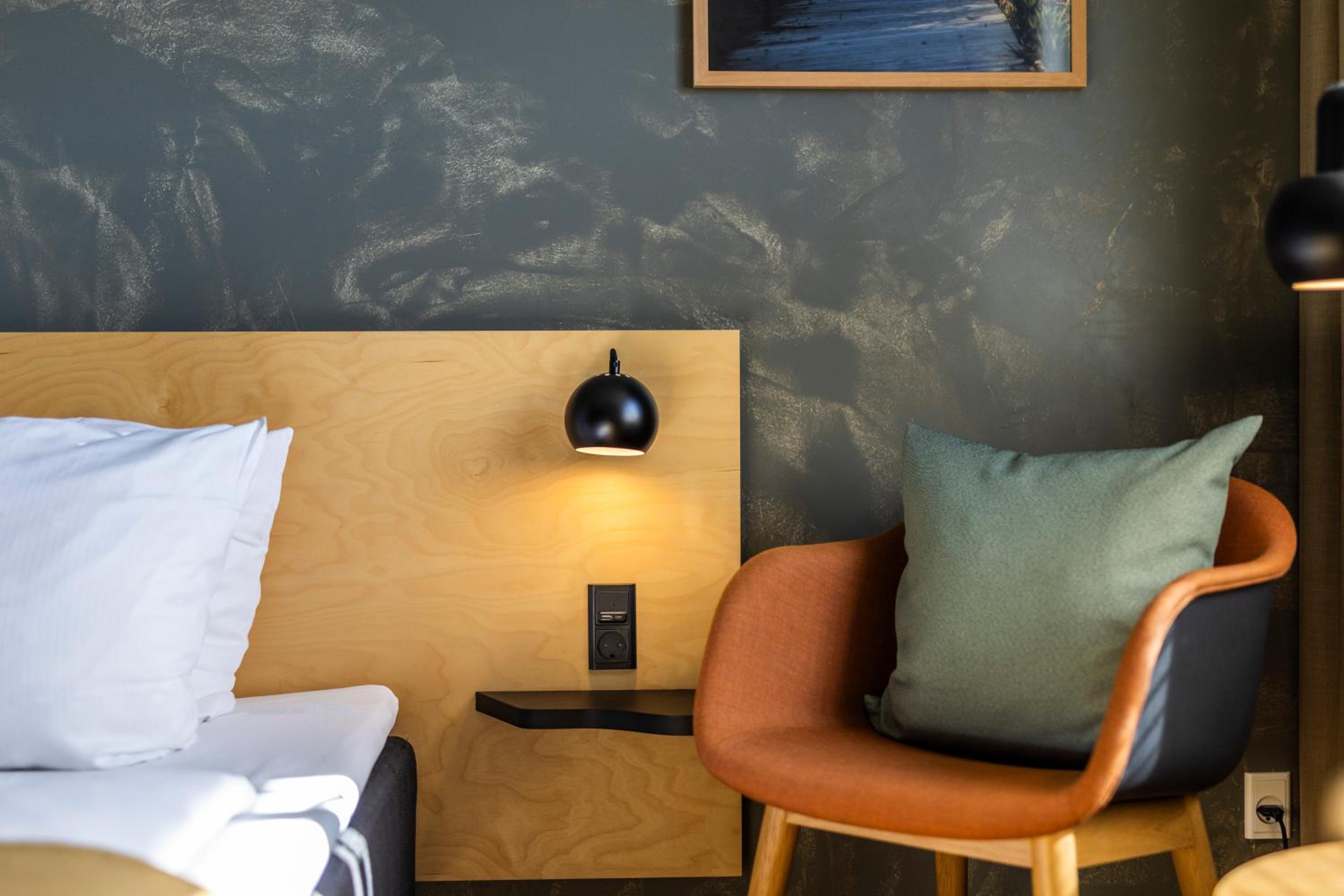 Die Zimmer-Einrichtung ist farblich super abgestimmt und modern und schlicht. Das hat uns gut gefallen!