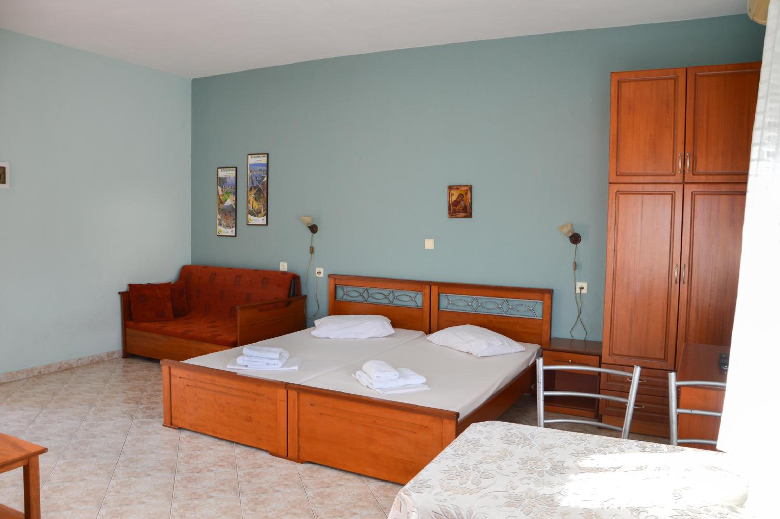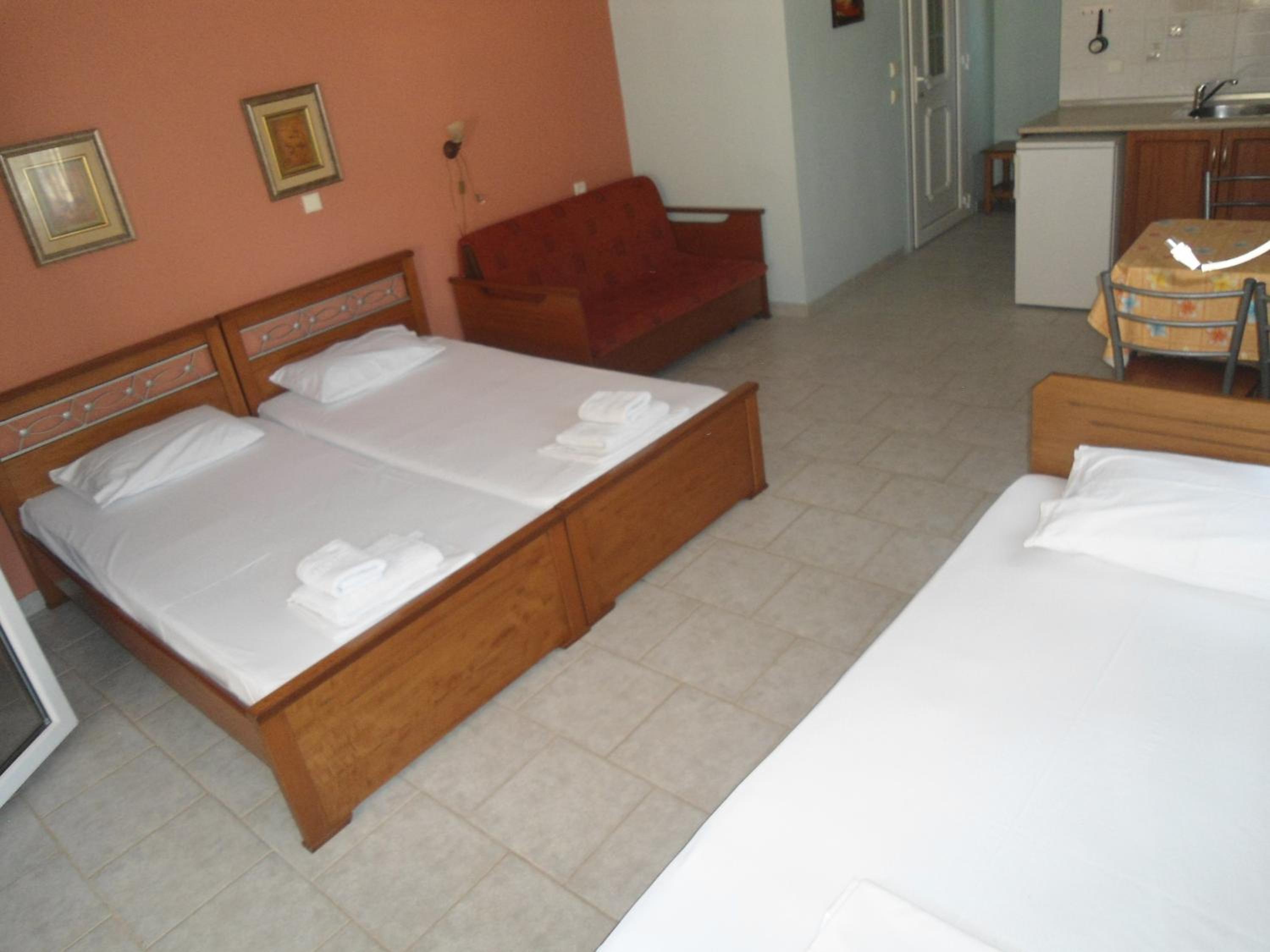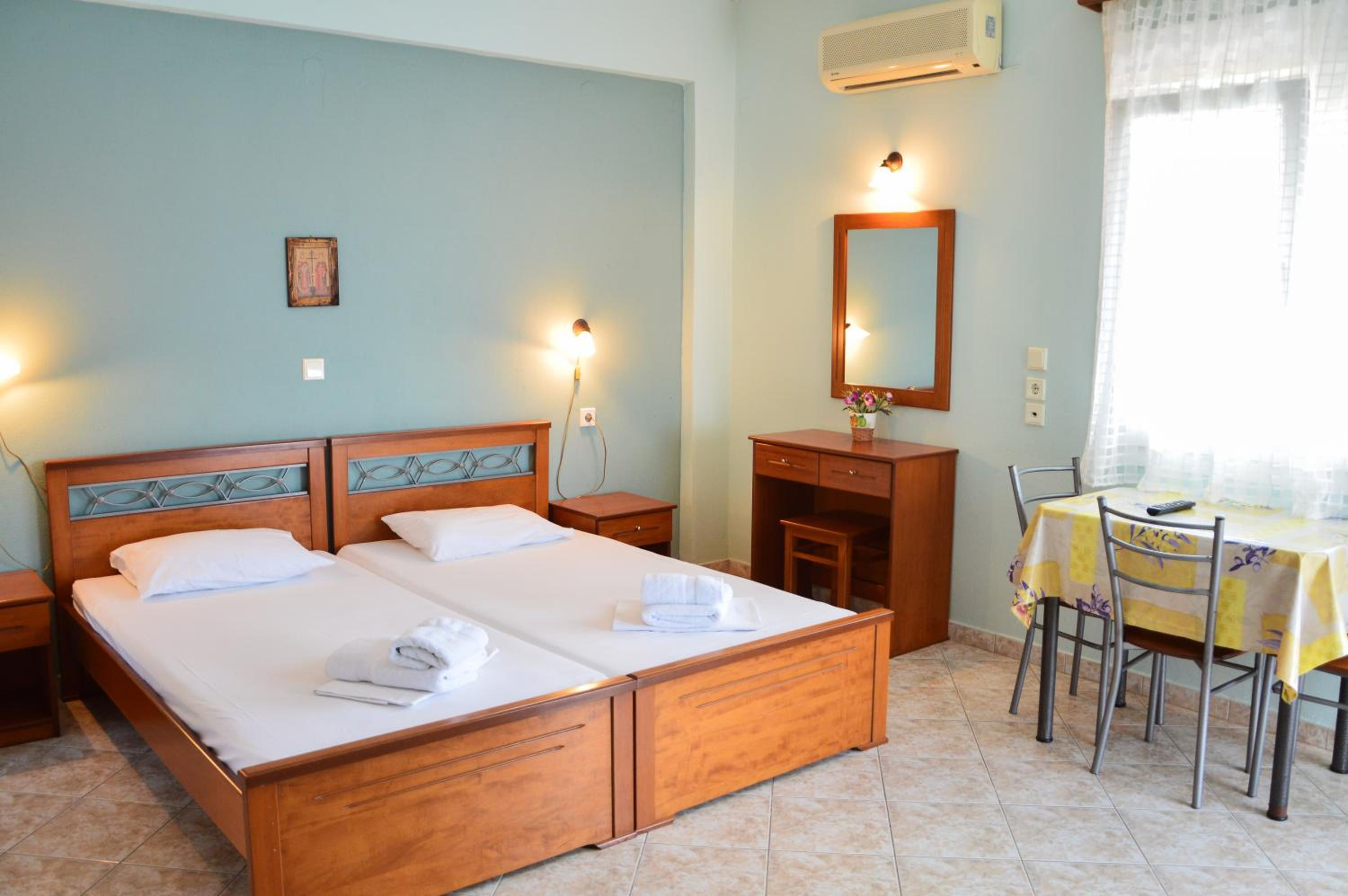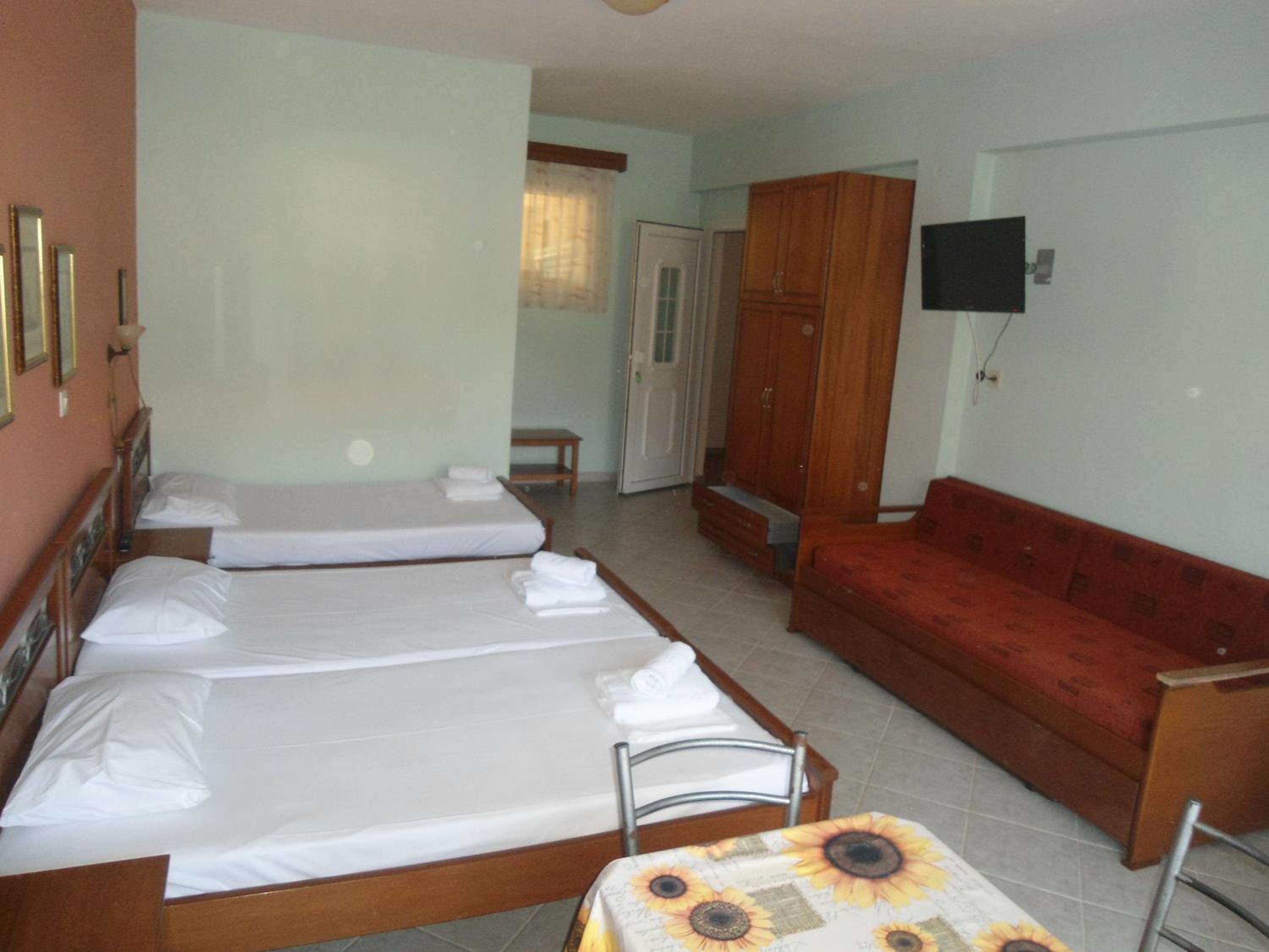 Spacious room, comfortable beds, wide and clean lunch space and a nice balcony. Towels and bed sheets were changed within our stay and the cleaning services were impeccable. Close to the beach and the walking area in the town. We were amazed and we would definitley come back next year.