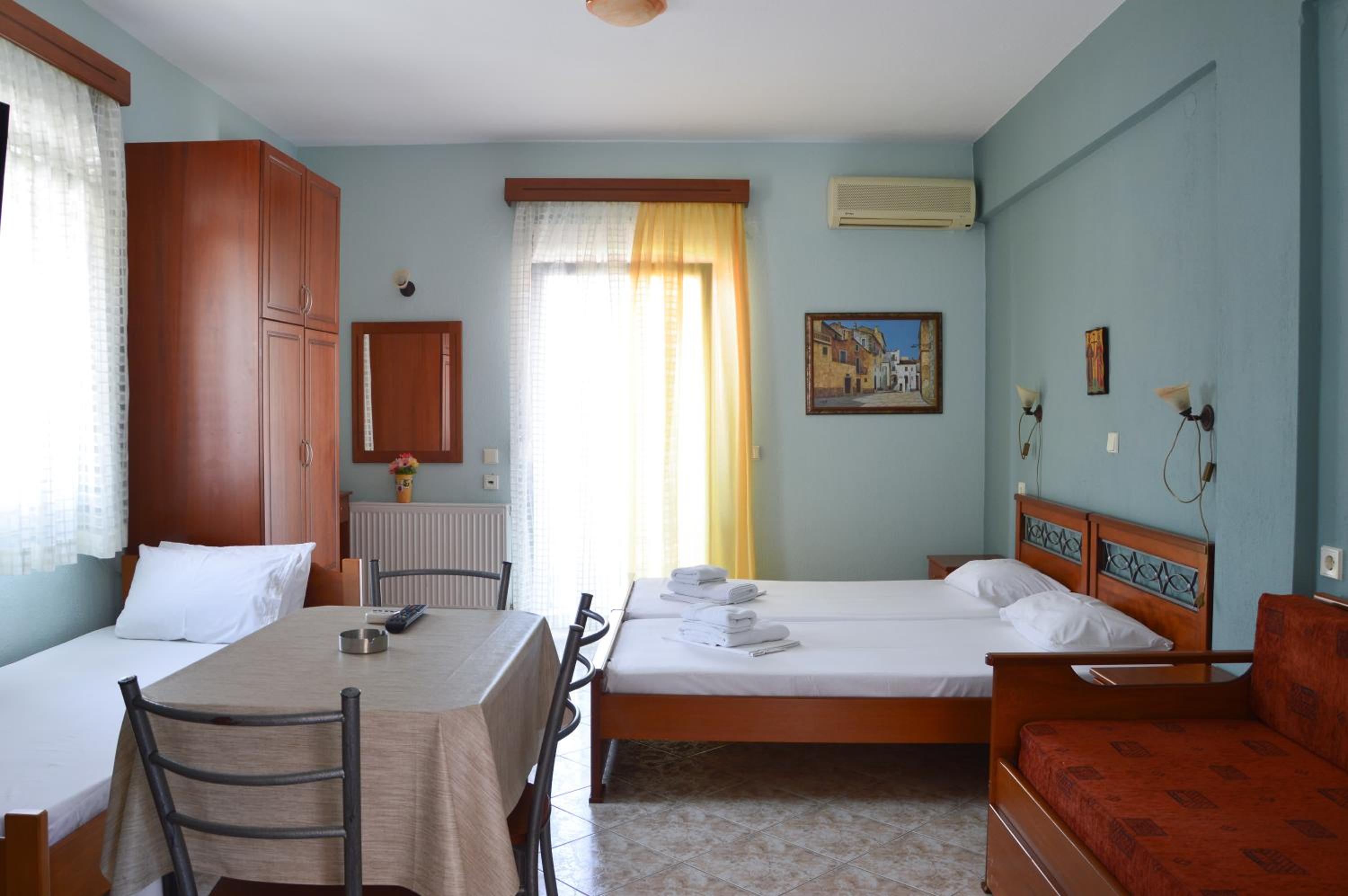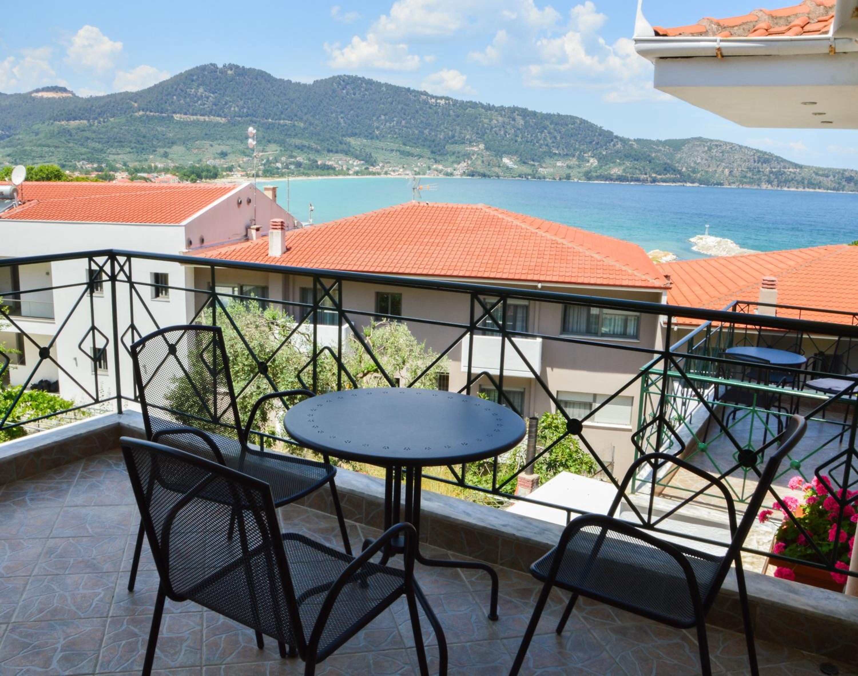 Experience the epitome of comfort and style at Vergina in Skala Potamias. Each room features a balcony, with some units offering a patio and stunning sea views. Enjoy the convenience of a private bathroom, desk, wardrobe, and kettle in every room.