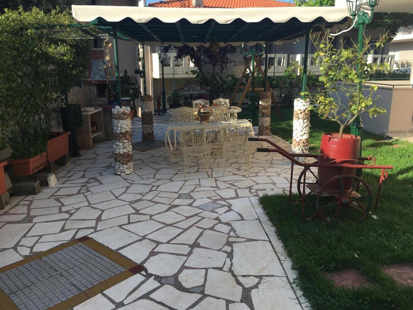 Very clean, daily cleaned and changed towels and sheets. Close to a very beautiful beach and taverns - 3min. Garden with natural shadow and swings for kids. Terrace for a perfect coffee before the kids wake up:)