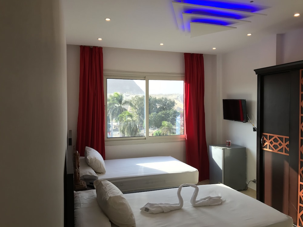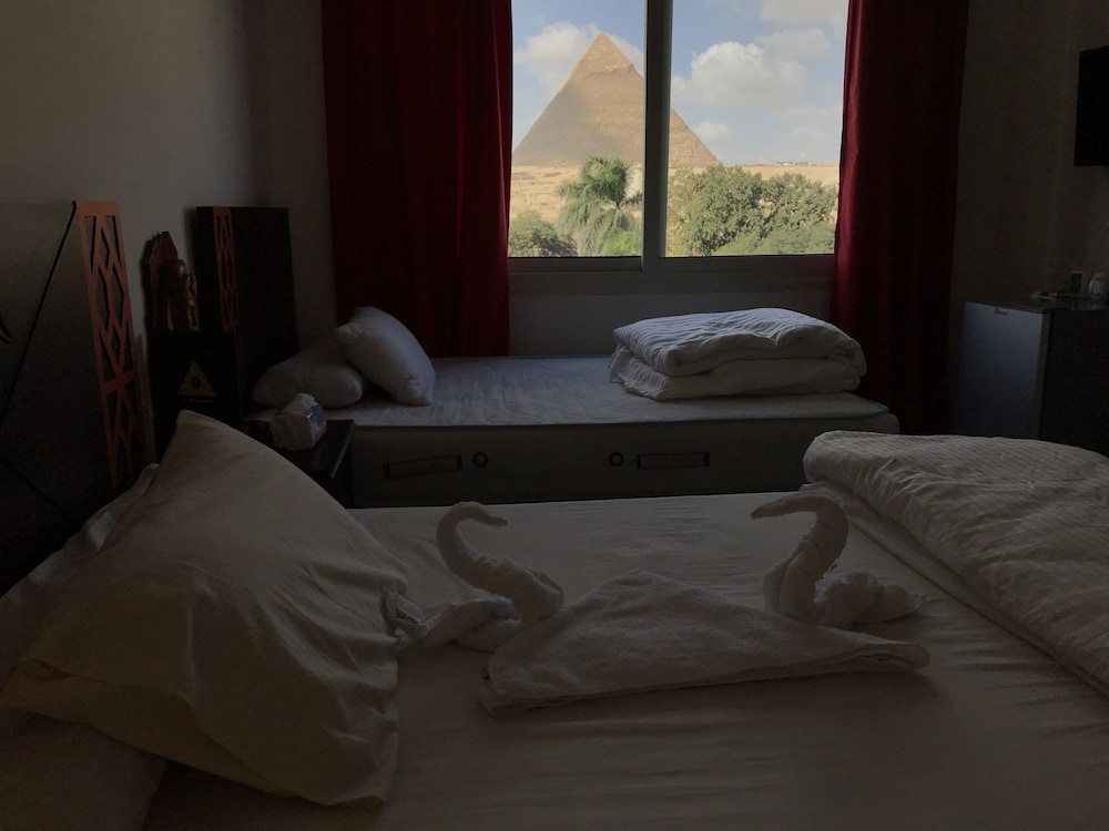 The rooms themselves are just fine (I recommend the double deluxe), but not much different than other places. Where this place really excels is with their staff and views. The staff are incredibly friendly and they have 2 rooftop areas with the most incredible views of the Pyramids and Sphinx, with excellent food and atmosphere! A big shout out to Moka, Basha and Islam M!! Do not hesitate to stay here and spend the evenings staring at the amazing views! We will be back for sure!