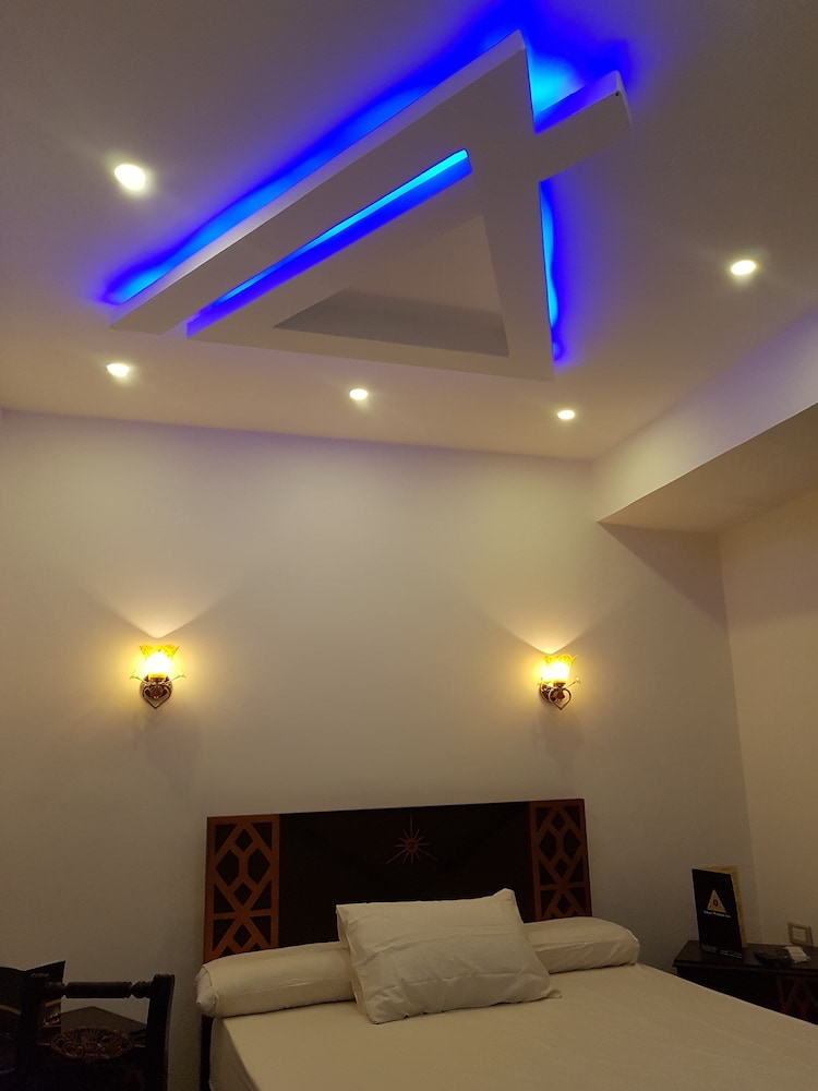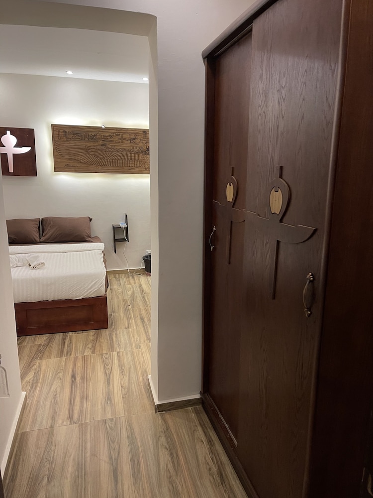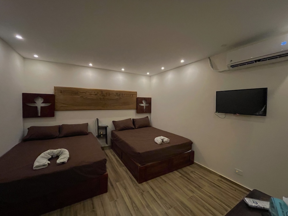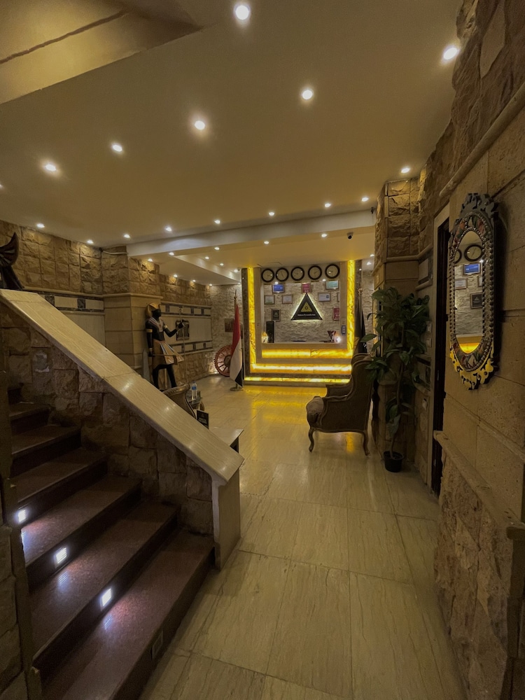 I enjoyed my stay at this hotel. I was on a week long business trip. I wanted to stay near the pyramids for the view, easy access in my free time, and a more authentic experience than a big box hotel in the middle of downtown . This hotel did not disappoint on any of these points. The staff were all super friendly and very inviting. I checked in around midnight of the day I scheduled without issue. A lot of hotels won’t let you check in until after 10 o’clock. I was sweating this after a long travel. The hotel is decorated with papyrus art and pharaonic statues and tchotchkes. I detected no unpleasant odors in either the hotel or my room. They do burn sandalwood and patchouly incense every morning and evening in the common areas. My room was an inner room with no windows but was quiet and comfortable. The room was large enough to not trip on my bags as I moved about. The bed was a futon style pad on a raised box. I like a firm bed so this worked for me too. The room didn’t have a security box. It had a wooden box with a key lock and wasn’t fastened to anything. The shower worked and the water was hot enough to make chicken soup and never ran out. The toilet flushed every time I pushed the button, but with not enough force to get paper down. I accidentally rinsed my toothbrush in the tap water but didn’t experience any GI issues. I’m not saying I’d drink the tap water, but I got away with it that time. I’ve been to some places where it’s a one and done GI experience with tap and even the shower water. The hotel provided me with all the bottled water I needed for drinking and use. The breakfast was an egg fritada, bologna slice with cheese, some bean paste, a yogurt, a few pieces of bread, and a bottle of water. I opted to eat dinner in the restaurant every evening. The food was great and the servings were generous. Obviously hotel food is a little more expensive than the local economy, but it was also very convenient and you can’t beat the sunset view of the pyramids off the balcony. The streets are safe to walk at all hours. The police presence is heavy and constant. And a working ATM is right around the corner.