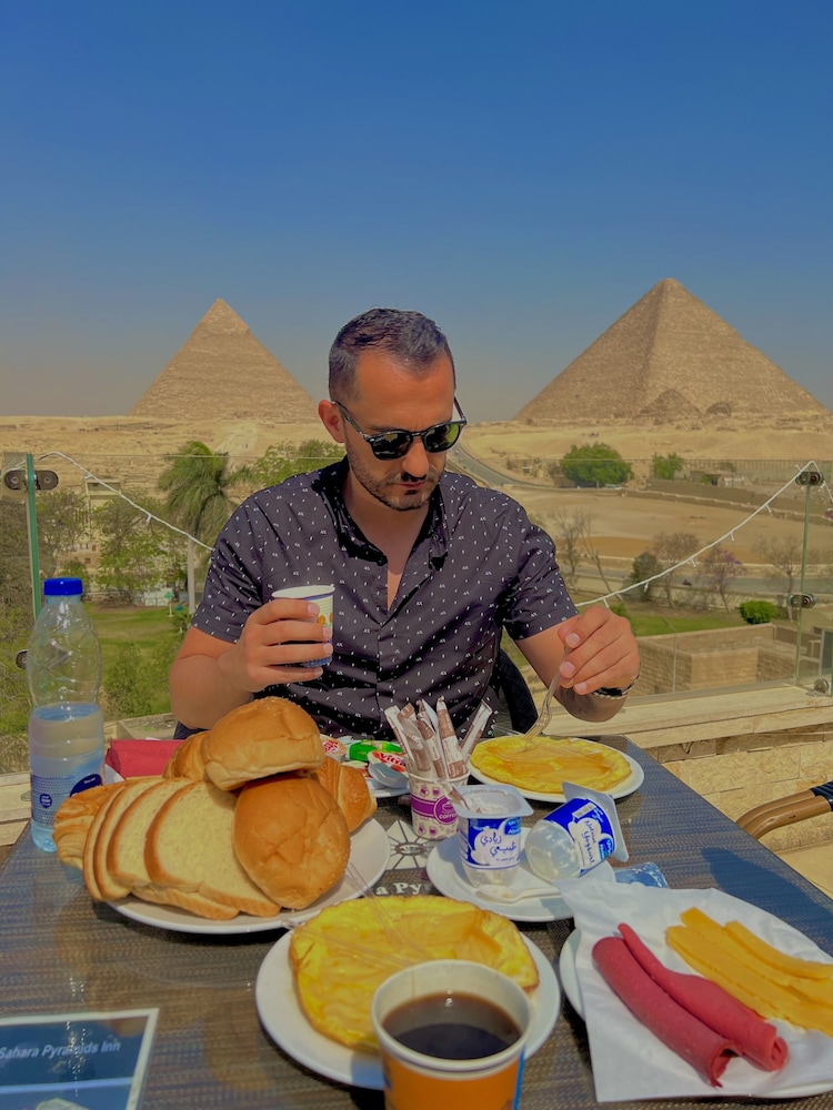 You’ll get the best view of the Pyramids from this place. It’s literally right across the street. Excellent stone work inside. Also has an upper deck for eating & observation which is really great. The mattresses are extra firm. Not my preference but the room a/c will freeze you out. Breakfast is included. Not your average western omelette but it’s filling. You Love the view. Brian Crow Houston TX