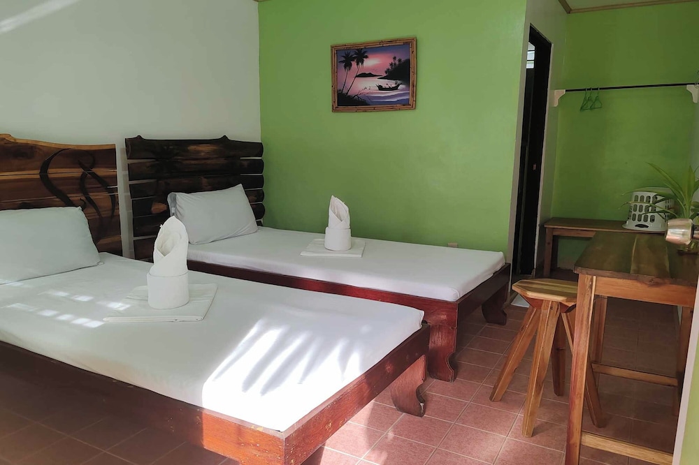 Very nice property with a great garden, on the beach and within walking distance to the “hot spots” of Port Barton. Breakfast included and a warm water shower and cold AC.