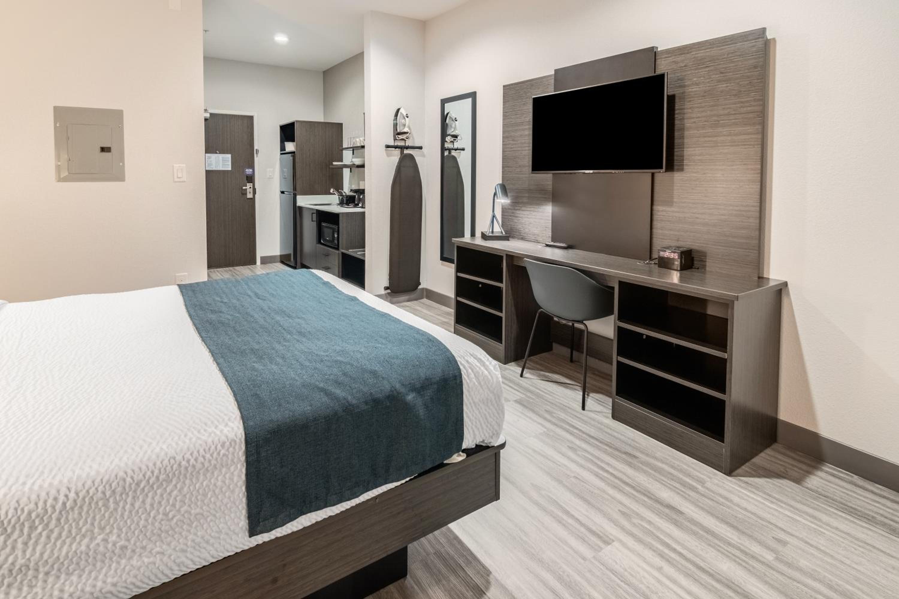 Studio 6-Mesquite, TX - Dallas offers a comfortable stay with air-conditioned rooms featuring free WiFi and kitchenettes. Enjoy a flat-screen TV and fridge in each room for your convenience.
