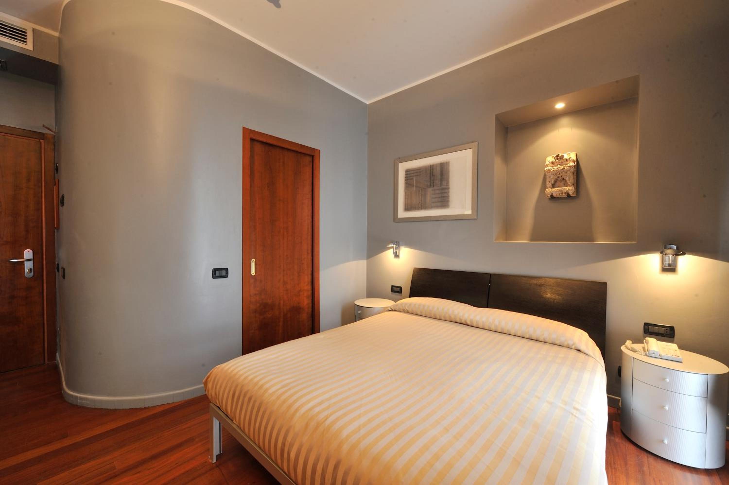 Si vede che le stanze erano vecchie, la ventola del condizionatore era dell anteguerra e non poteva essere accesa senza fare un casino allucinante. Peccato anche chiedere la matrimoniale e trovare i due letti singoli coi materassi singoli uniti... Basta rigirarsi nel sonno e si separano. La stanza in generale pulita ma il termosifone in bagno accanto alla doccia dove in teoria andrebbe messa la roba ad asciugare era inutilizzabile perché impolveratissimo. Né acqua né niente di benvenuto, in un 4 stelle a 90 euro a notte mi aspetto un po' di pulizia in più.