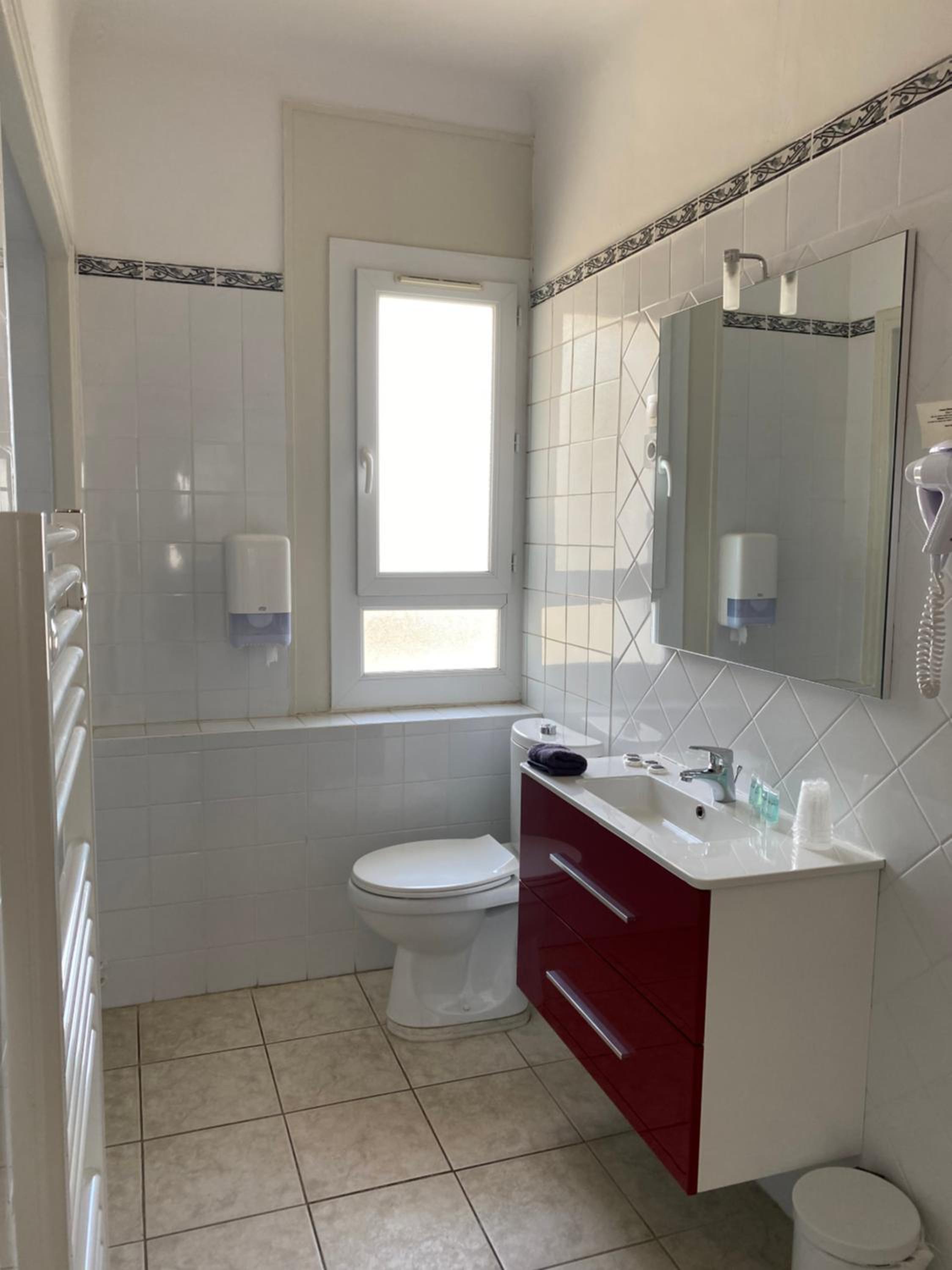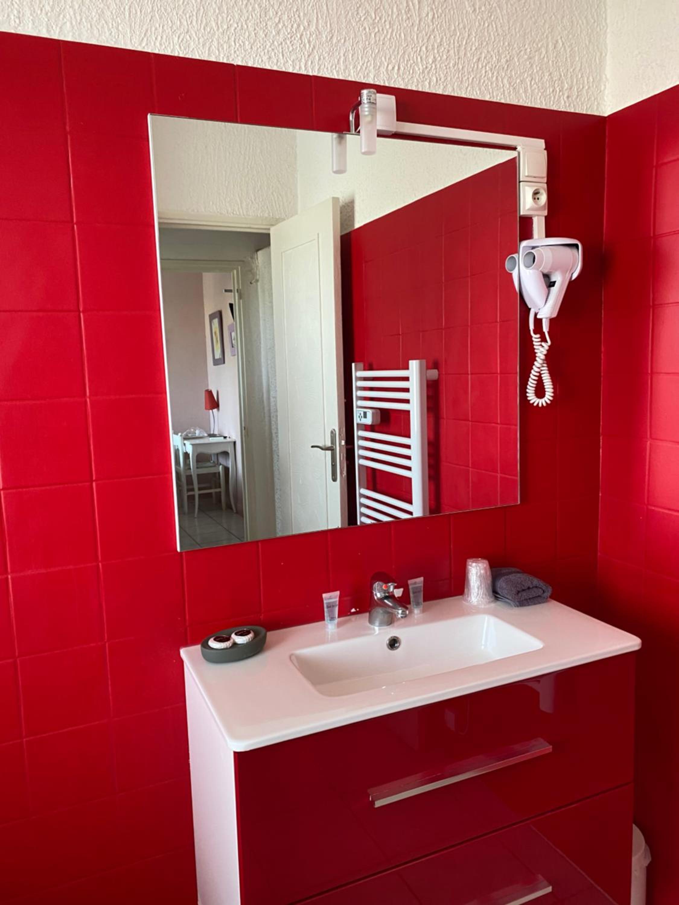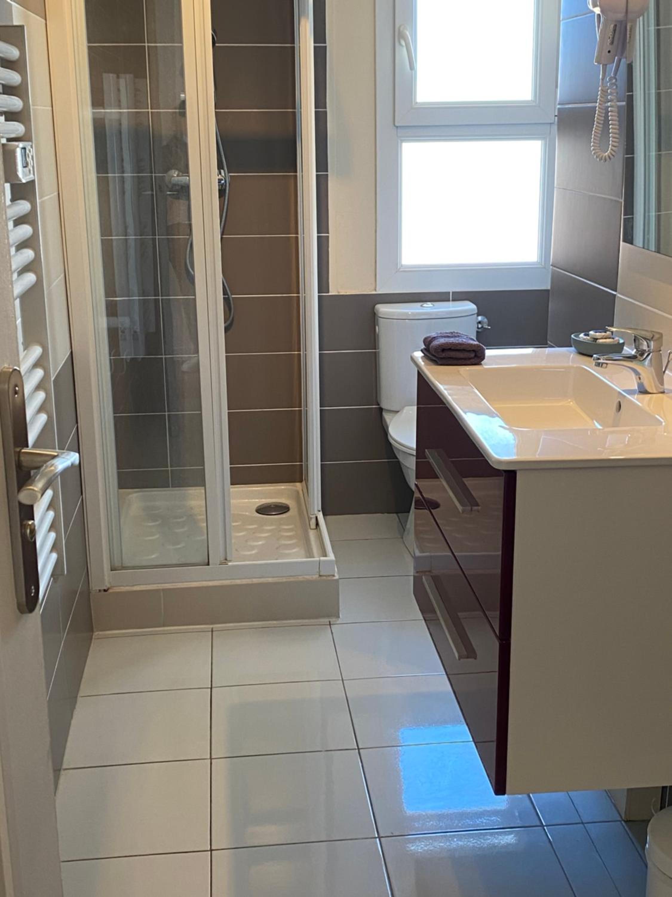 Jolie chambre mais très petite ainsi que la salle de bains.