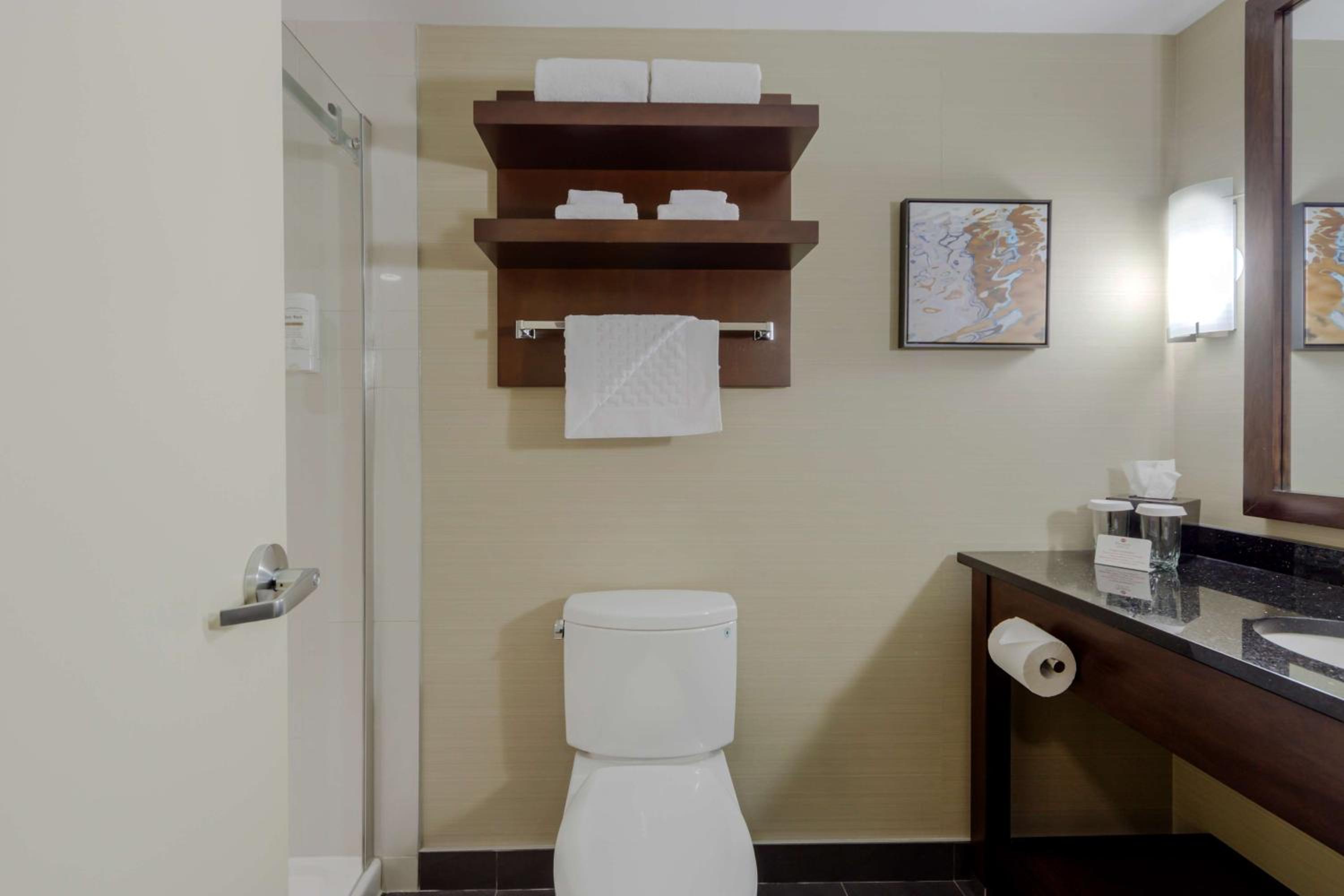 Nice new hotel, nice restaurant by lobby. Easy parking close to highway and airport and close to amenities. Comfy beds and it was nice and quiet.
