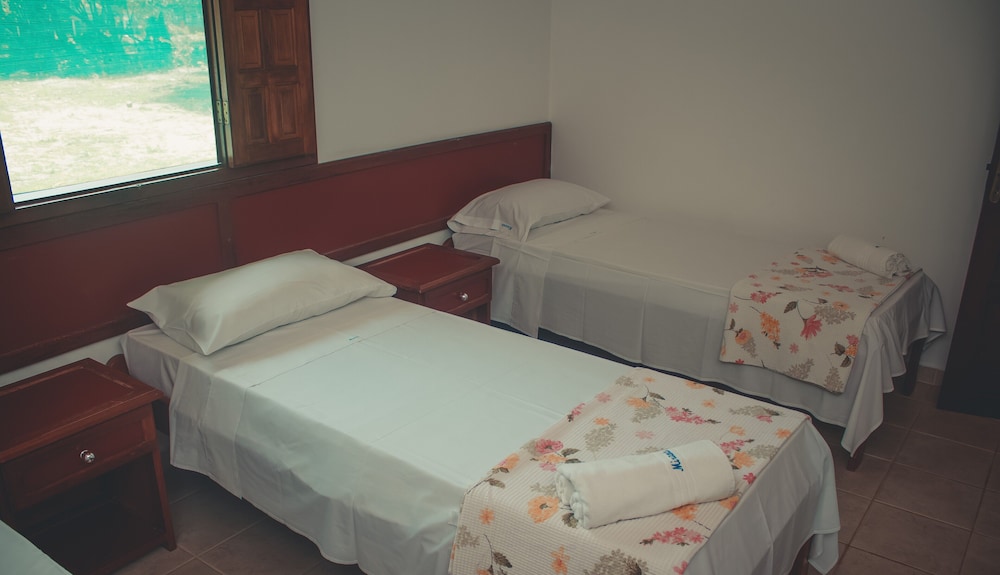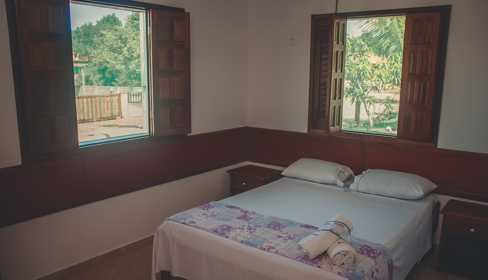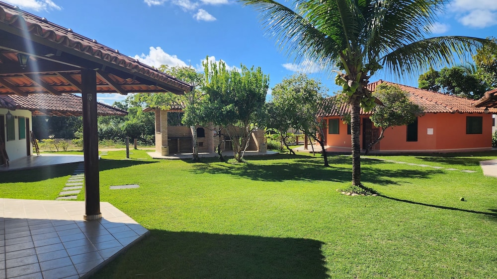 Estadia agradável, café da manhã muito gostoso e fresquinho, td feito na hora. Apenas não gostei do colchão da cama de casal, extremamente duro. Devido ao quarto ficar fechado tinha um leve cheiro de mofo na mobilia, mas a medida q fomos utilizando foi amenizando. O bangalô é bem funcional, uma cozinha, 2 sofas-cama, tv, uma cama d casal e uma d solteiro no quarto.Espaço no jardim muito amplo e bem cuidado, parquinho excelente pras crianças.