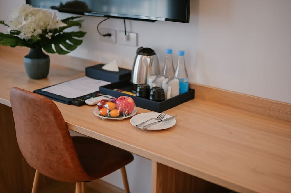 Hyvin perus. Parvekkeella ei kalusteita. Ilmastointi toimi hitaasti. Ravintola oli kallis ja ruoka erikoista. Kuitenkin siisti ja sänky sopivan kova. Tilava huone.