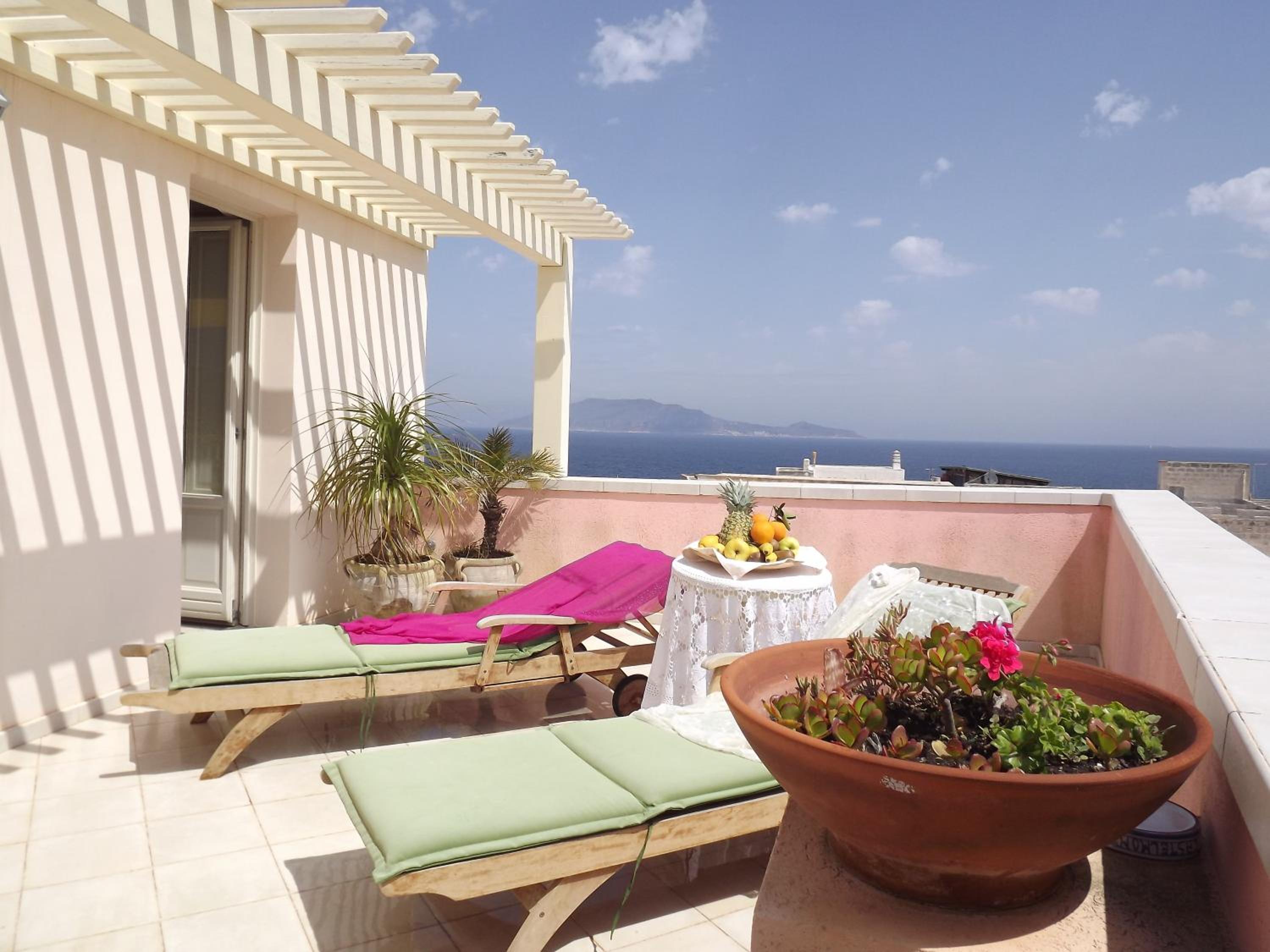 Familiäre Atmosphäre, sehr gute Tipps für Ausflüge auf der Insel. Das kleine Team um Daniele und Stefano ist einfach tutto bene! Authentisch, freundlich, hilfsbereit. Die Aussicht von der Dachterrasse ist gigantisch: ein atemberaubender Blick auf den Hausberg mit Burg, das Tyrrhenische Meer und die Nachbarinsel Levanzo sowie ein stimmungsvolles Sunset. Die täglich selbstgebackenen Kuchen sind lecker, das italienische Frühstück ist sehr gut. Tipp: Das Obst (Pfirsiche, Birnen …) strotzt vor Sonne…