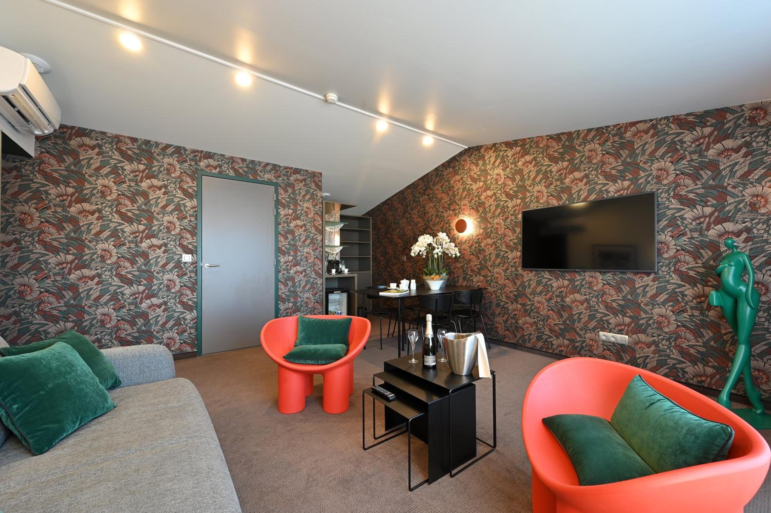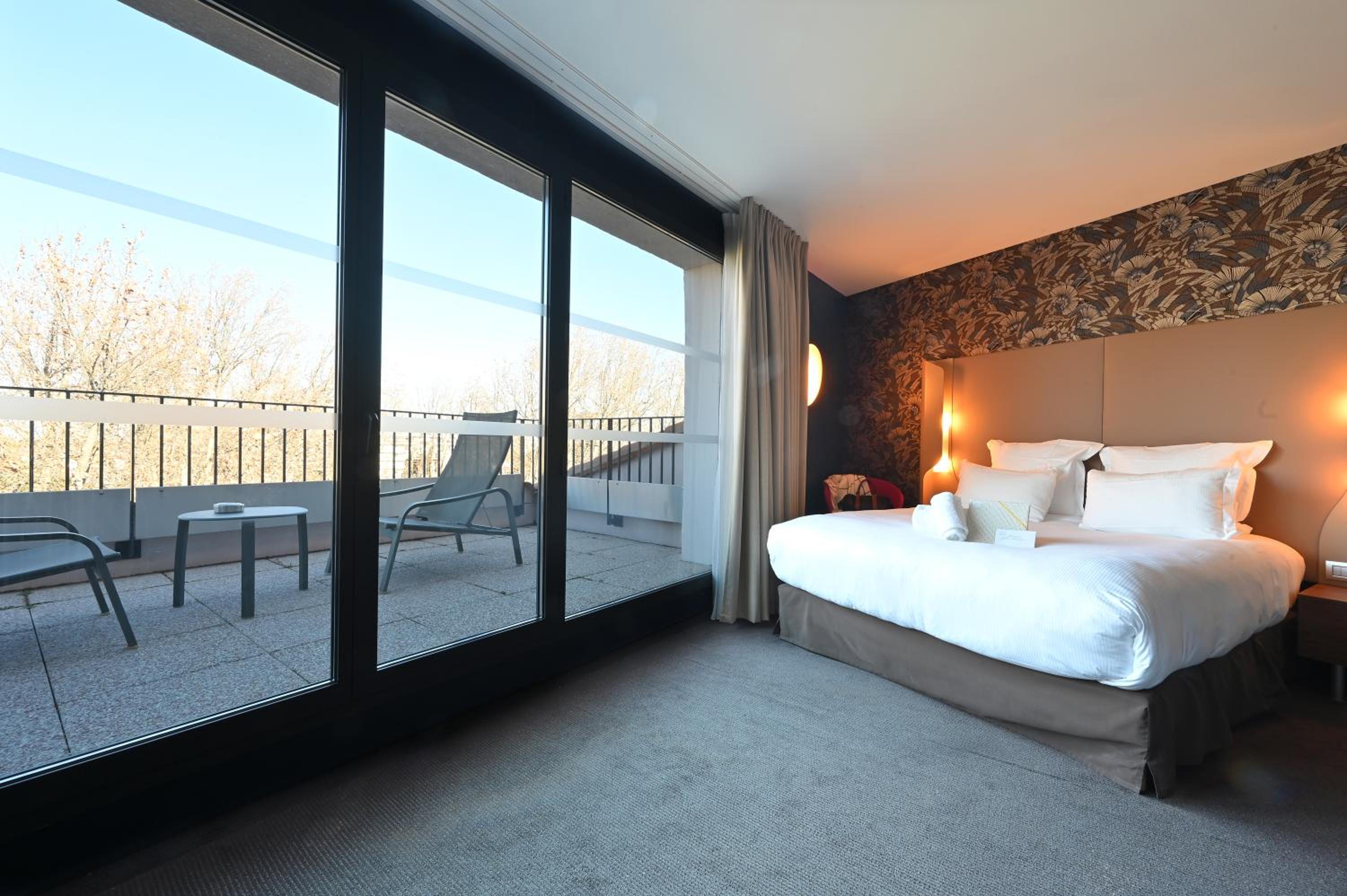 Dali hôtel offers a luxurious stay in Perpignan, with modern rooms featuring air-conditioning, soundproofing, and stunning city and park views. Enjoy a comfortable night's rest with hypoallergenic pillows and entertainment on a flat-screen TV in each room's cozy ambiance.