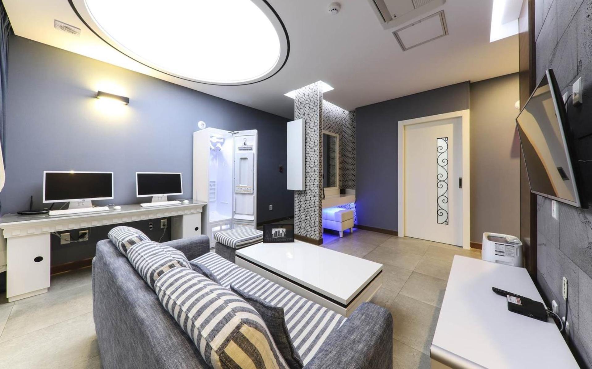 가족 여행 숙소로 아주 좋았어요. 원룸 형태이지만 벽으로 침대 공간과 쇼파 공간이 분리되어있고 티비도 두 쪽에 다 설치되어 있어서 편했습니다. 덕분에 다른 사람이 자는 동안 티비를 봐도 눈치가 보이지 않더라구요 ㅎㅎ 그리고 중심가에 위치해 주변에 식당이나 편의점이 많았습니다.