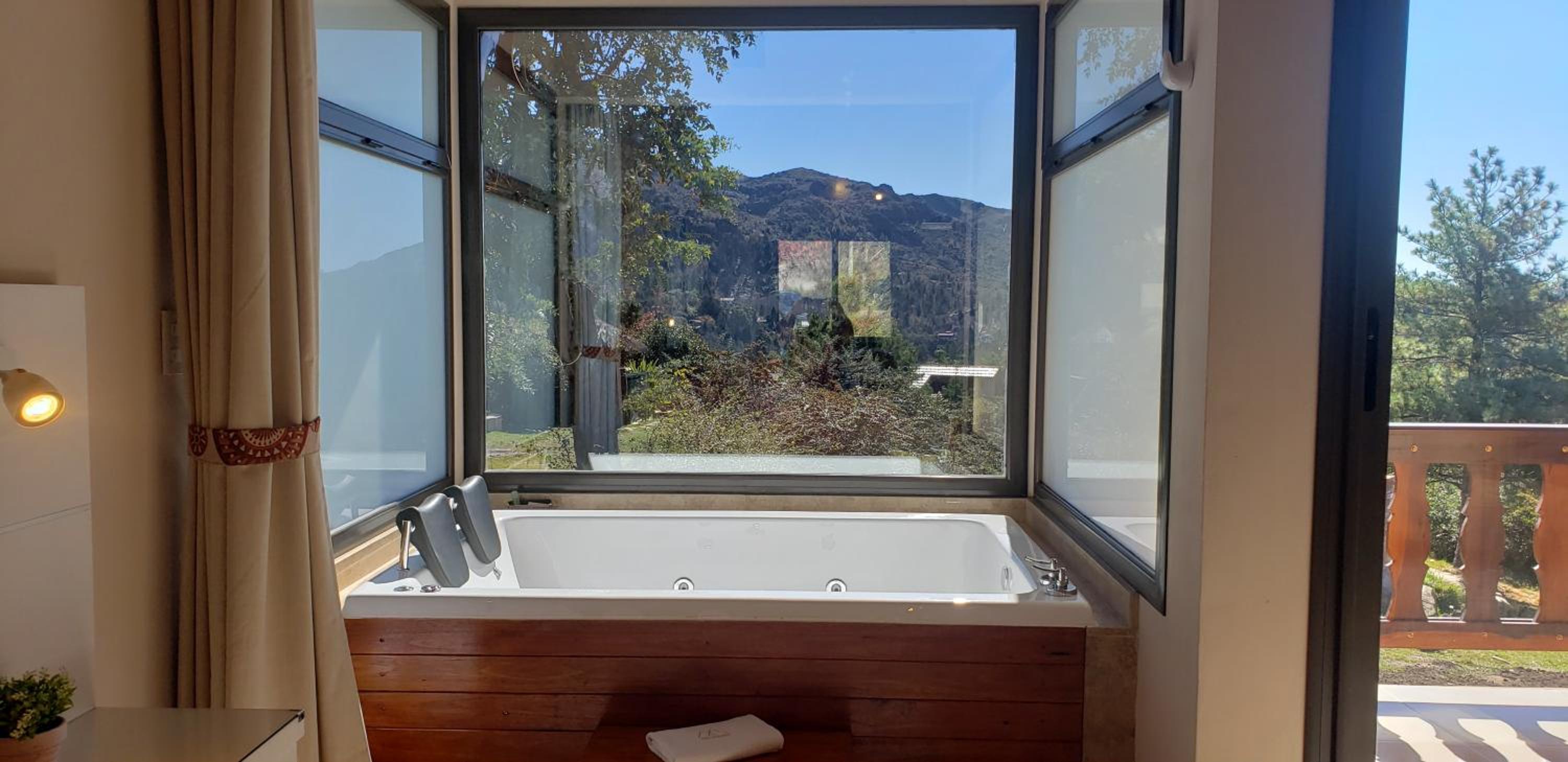 La cabaña nro 5 en la que estuvimos, tenia una hermosa vista. Era muy cómoda. Esa terraza, el jacuzzi, la cama grande. Pudimos cocinar dado que tiene todo lo necesario. La pileta de ceramicos y baldosas, es hermosa con esa vista. El dayuno seco es muy completo.