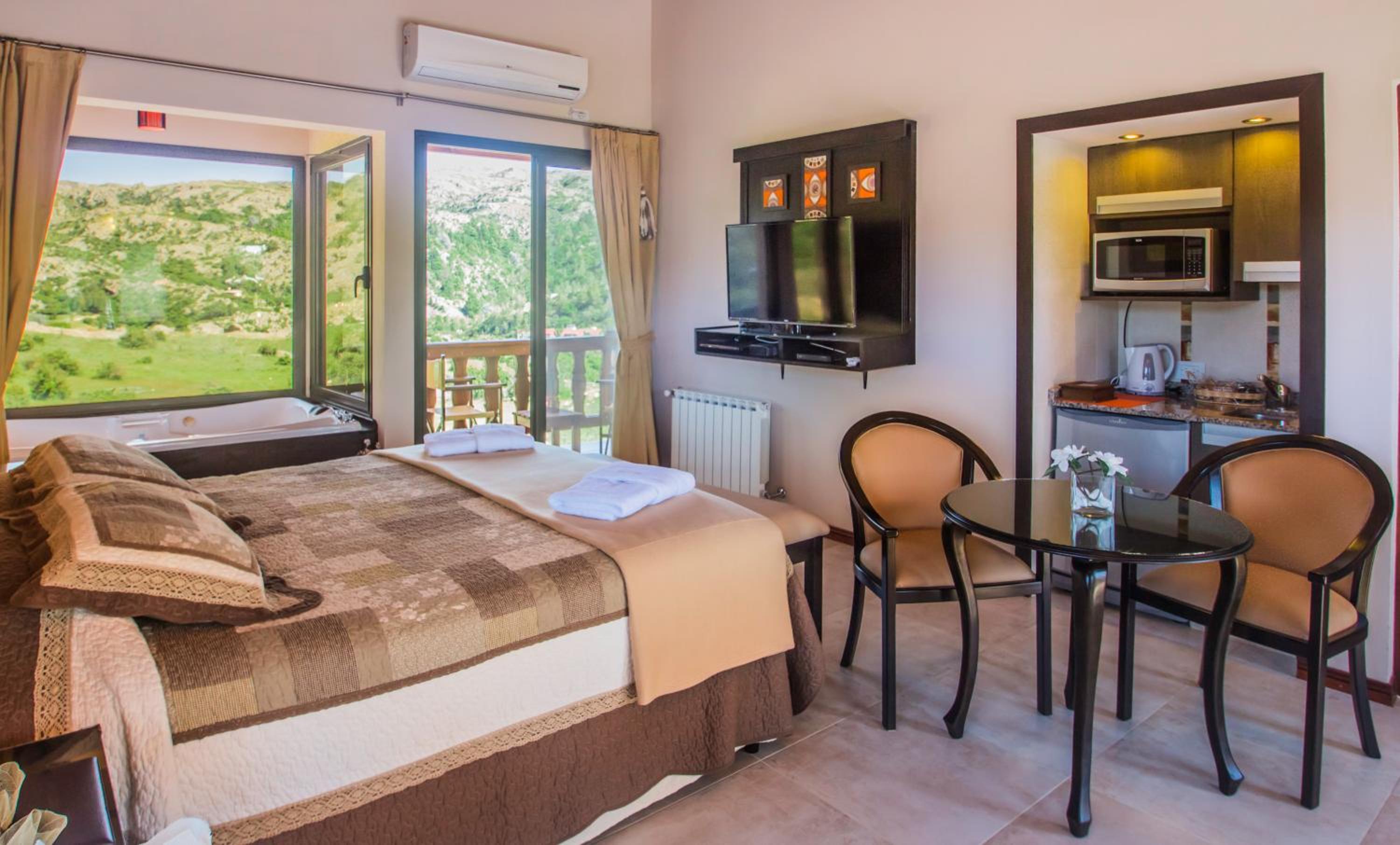 Guests can unwind in the hot tub while enjoying breathtaking mountain views or savor a gluten-free breakfast before exploring the hiking trails around La Cumbrecita. The hotel's barbecue area is ideal for social gatherings and creating lasting memories.