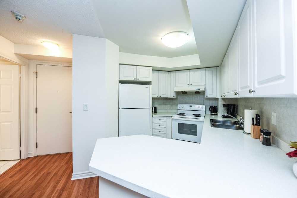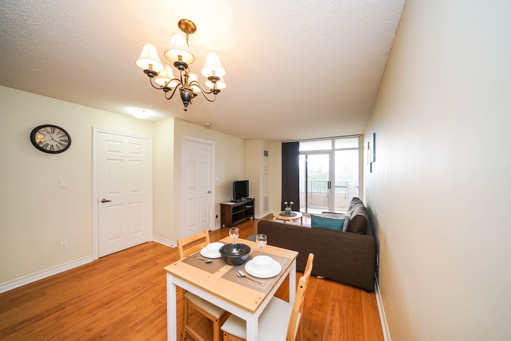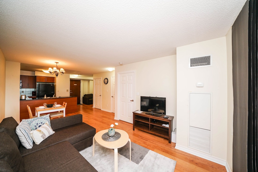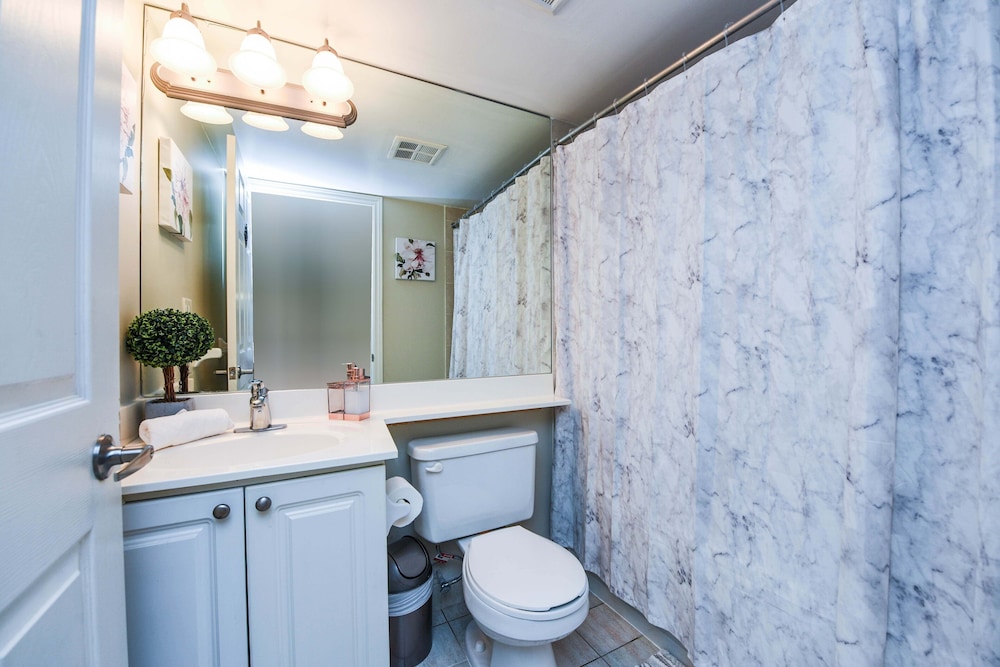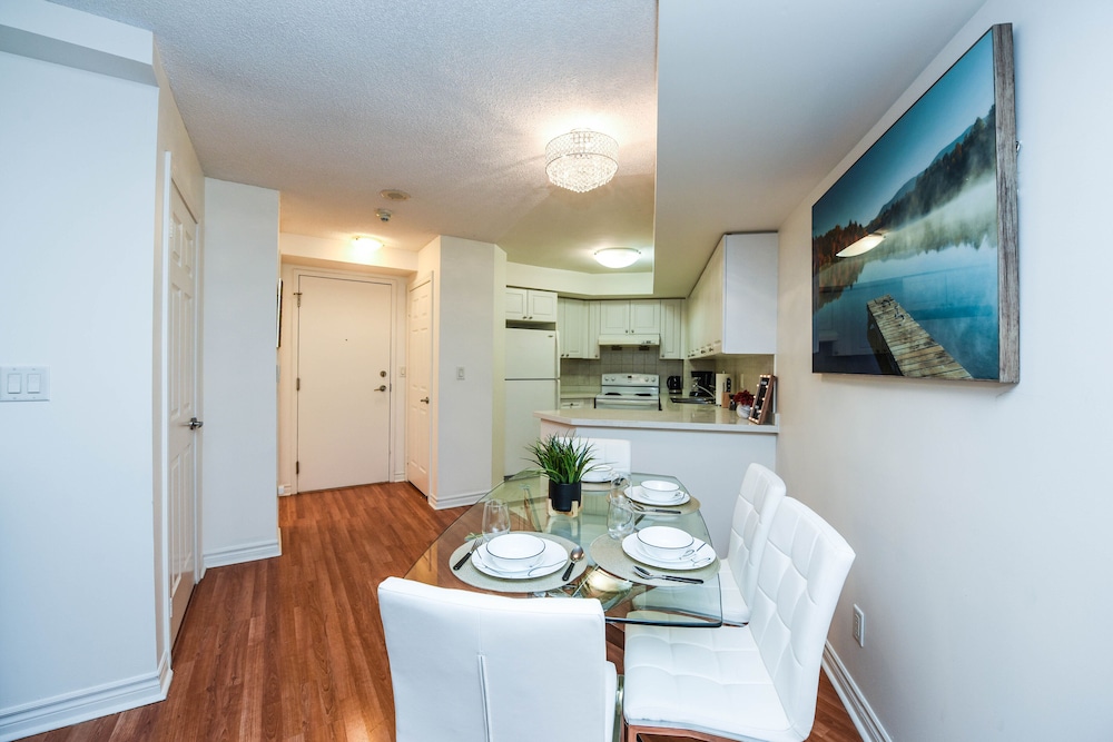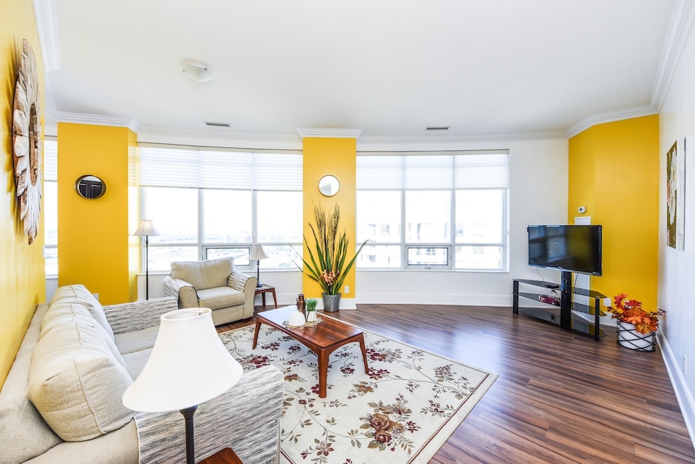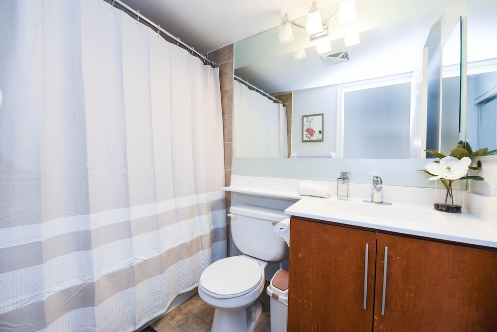 Pleasant experience, clean facility, great hospitality. The view was amazing. As we were a family of five we appreciated having 2 bathrooms and the bedroom privacy. We also enjoyed the access to underground parking. Wonderful experience overall and would definitely return.