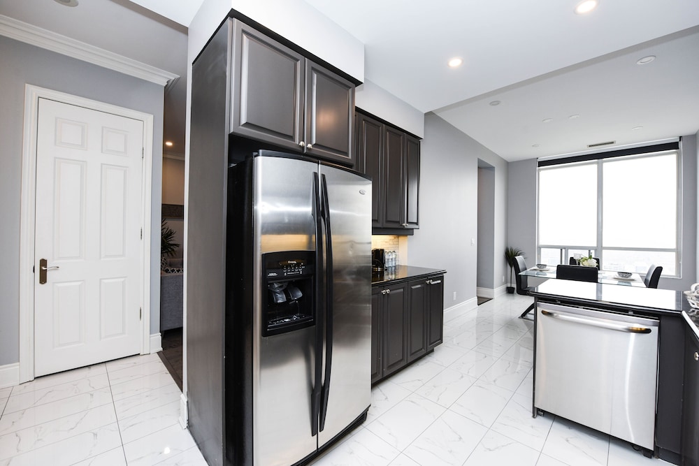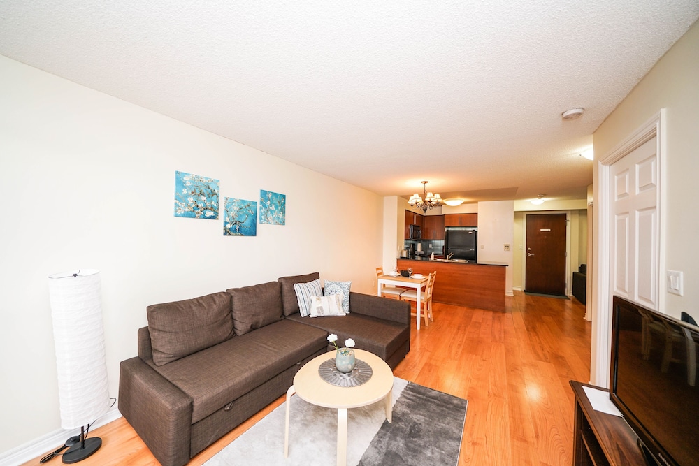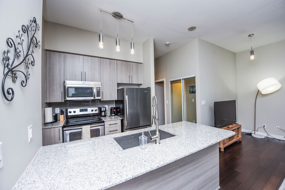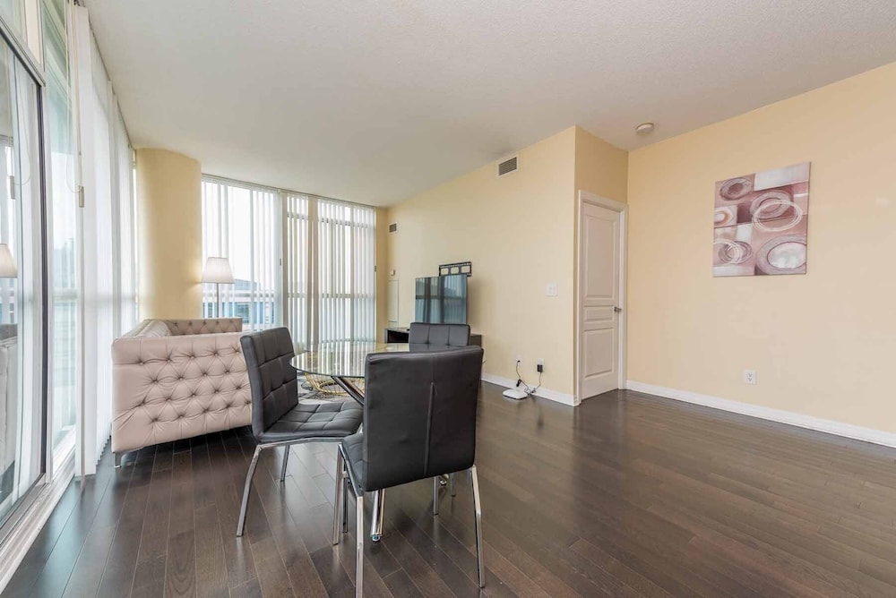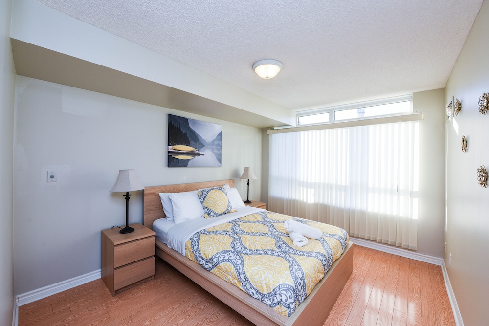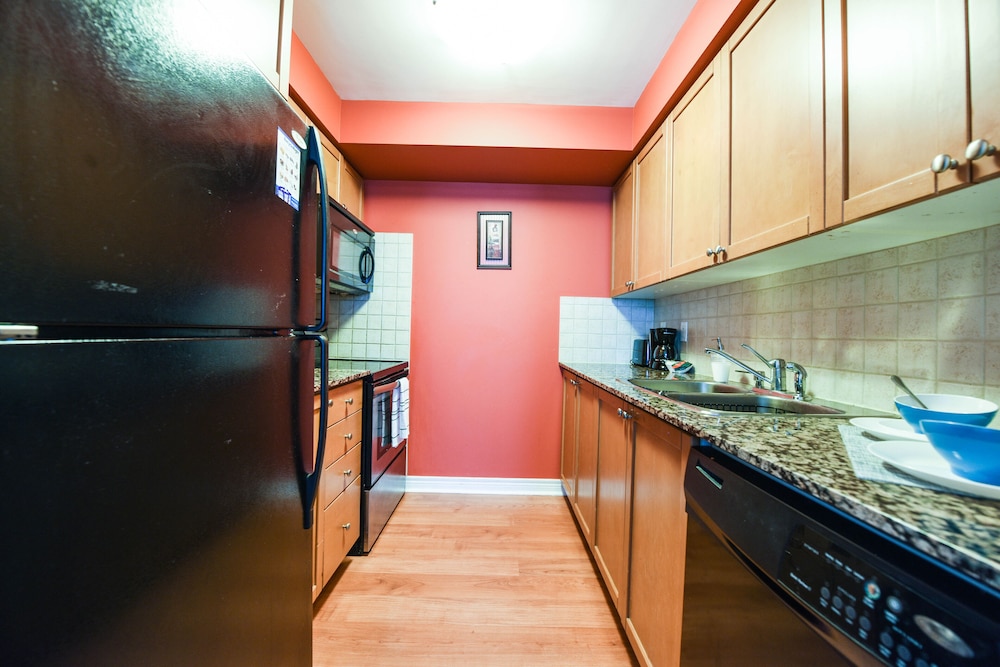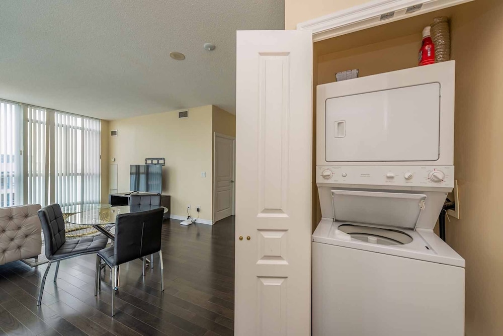 Pleasant experience, clean facility, great hospitality. The view was amazing. As we were a family of five we appreciated having 2 bathrooms and the bedroom privacy. We also enjoyed the access to underground parking. Wonderful experience overall and would definitely return.