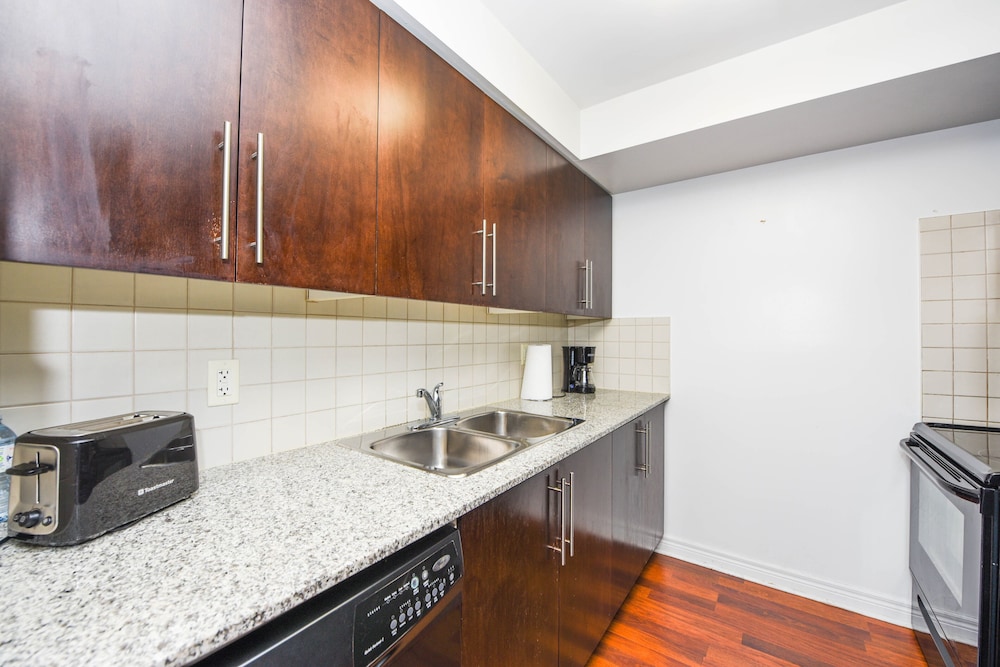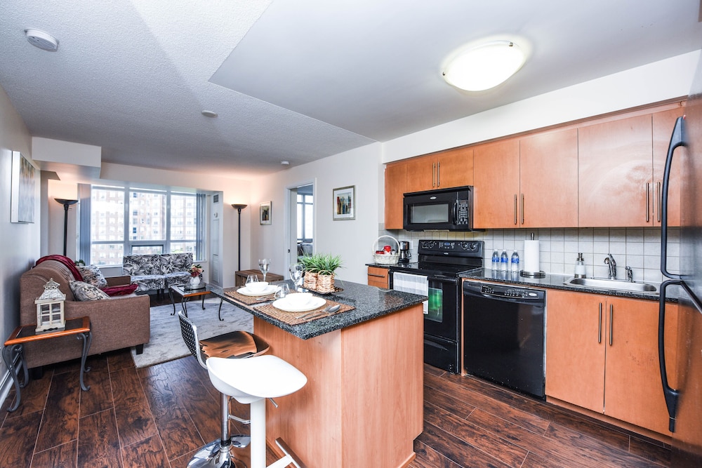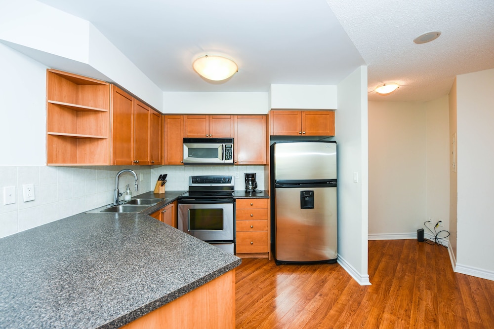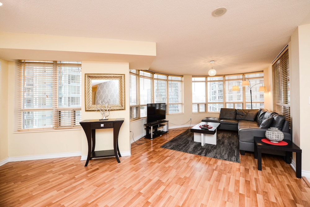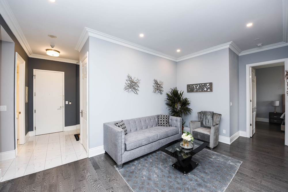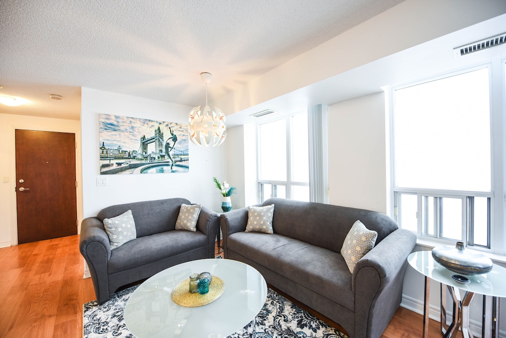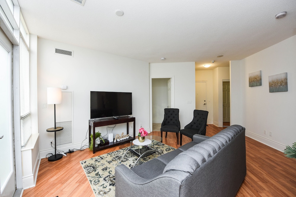 Pleasant experience, clean facility, great hospitality. The view was amazing. As we were a family of five we appreciated having 2 bathrooms and the bedroom privacy. We also enjoyed the access to underground parking. Wonderful experience overall and would definitely return.