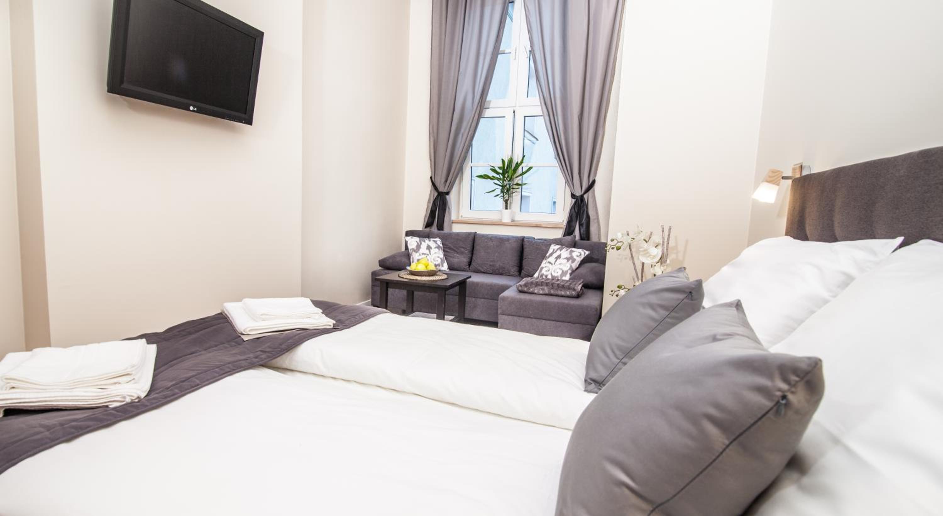 Experience comfort and style at Black Swan House, Old Town in Gdańsk. Enjoy stunning garden and city views from our sustainable property located near key landmarks like St. Nicholas Roman Catholic Church and Neptune Fountain. Each unit is equipped with modern amenities including air conditioning, flat-screen TV, and free WiFi.