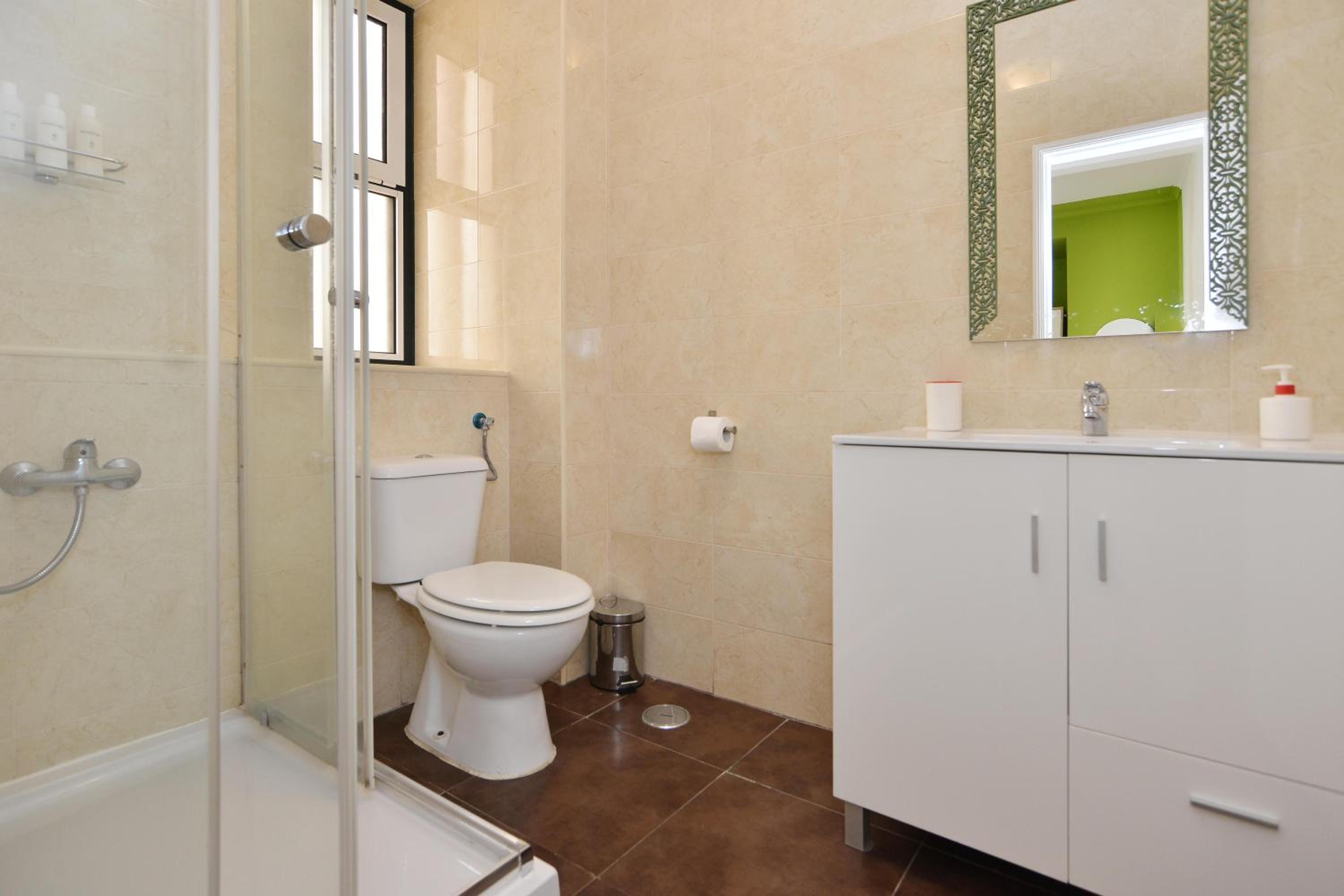 The shower head should be replaced, as it has clearly reached the end of its lifespan. It had black marks on it that looked like mold. The soundproofing was also poor - I could clearly hear neighbors walking down the hallway.