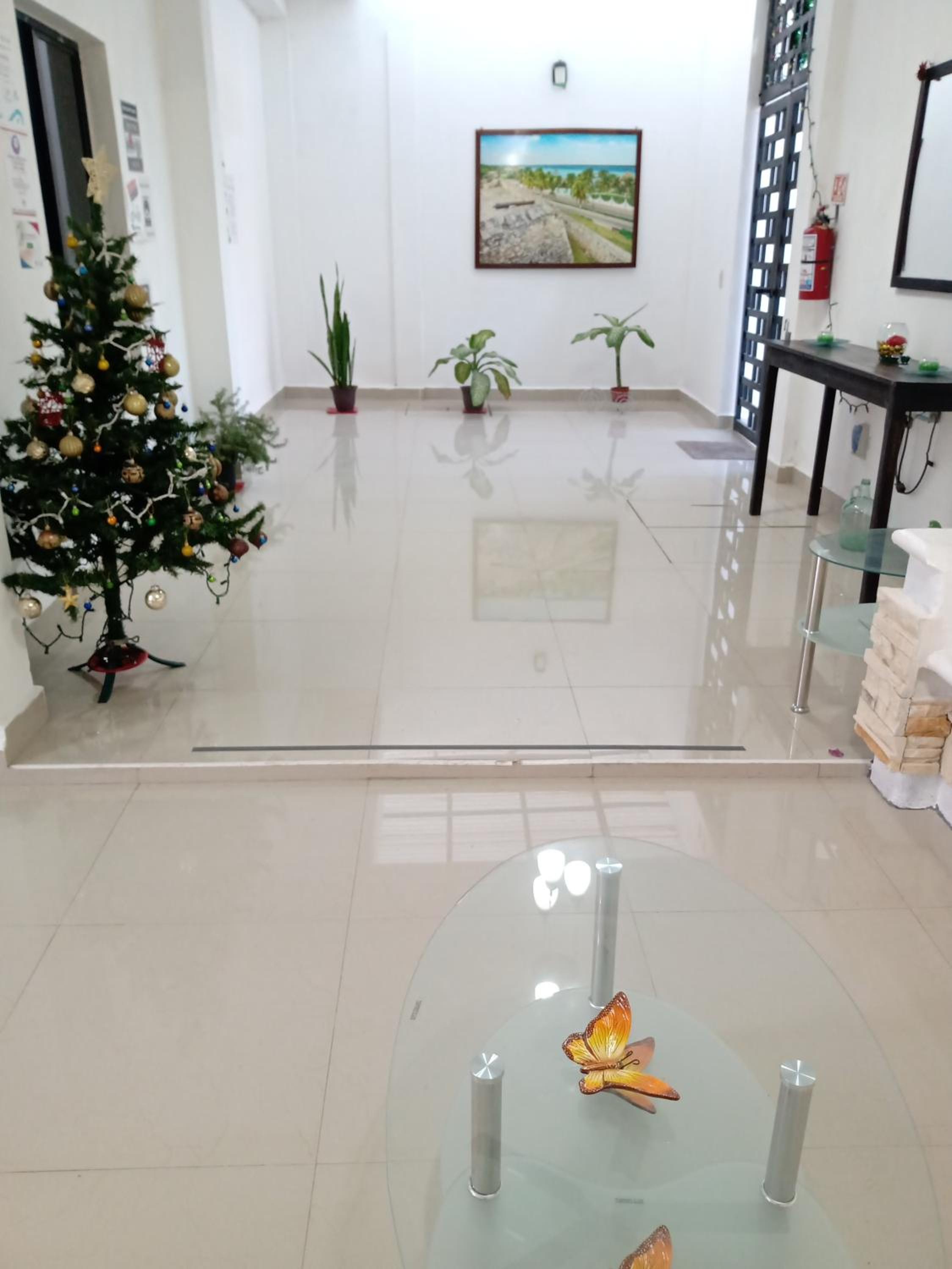 Les photos correspondent au couloir de l'entrée. Nous avons trouvé une chambre qui ne correspondaient ni aux photos ni à nos attentes. La note de 8,5 n'est pas appropriée. Il y a avait des fourmis de partout, des traces jaunes sur les draps et des traces sur les matelas, le frigo non branché était en piteux état et rouillé, la climatisation était bruyante. Quelques élements de vaisselle mais en nombre impairs.