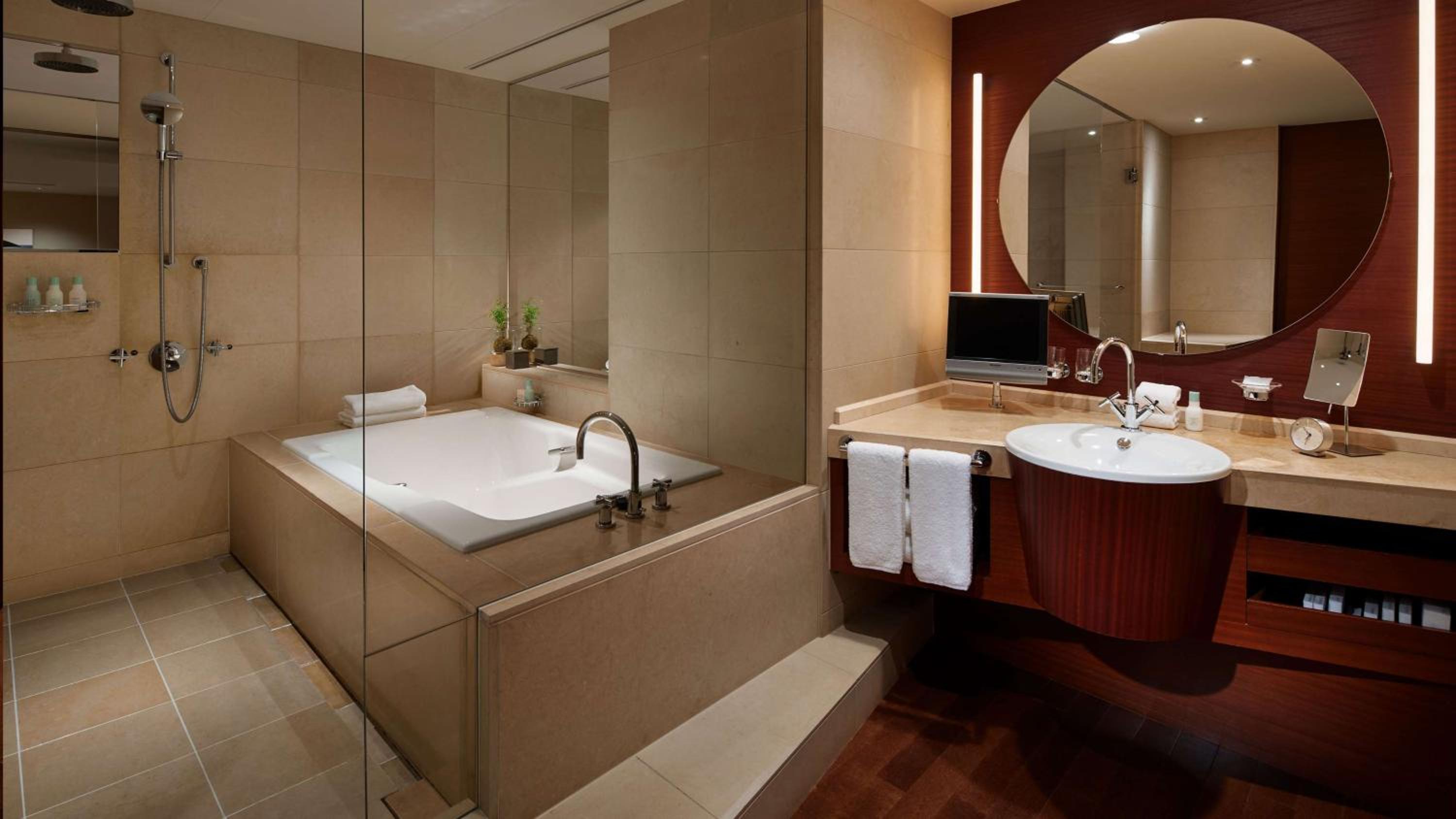 Grand Hyatt Tokyo offers stylish and modern rooms with warm wood furnishings and Japanese aesthetics. Each room features a rain shower, deep soaking limestone bathtub, flat-screen TV, and complimentary yukata robes for ultimate relaxation.