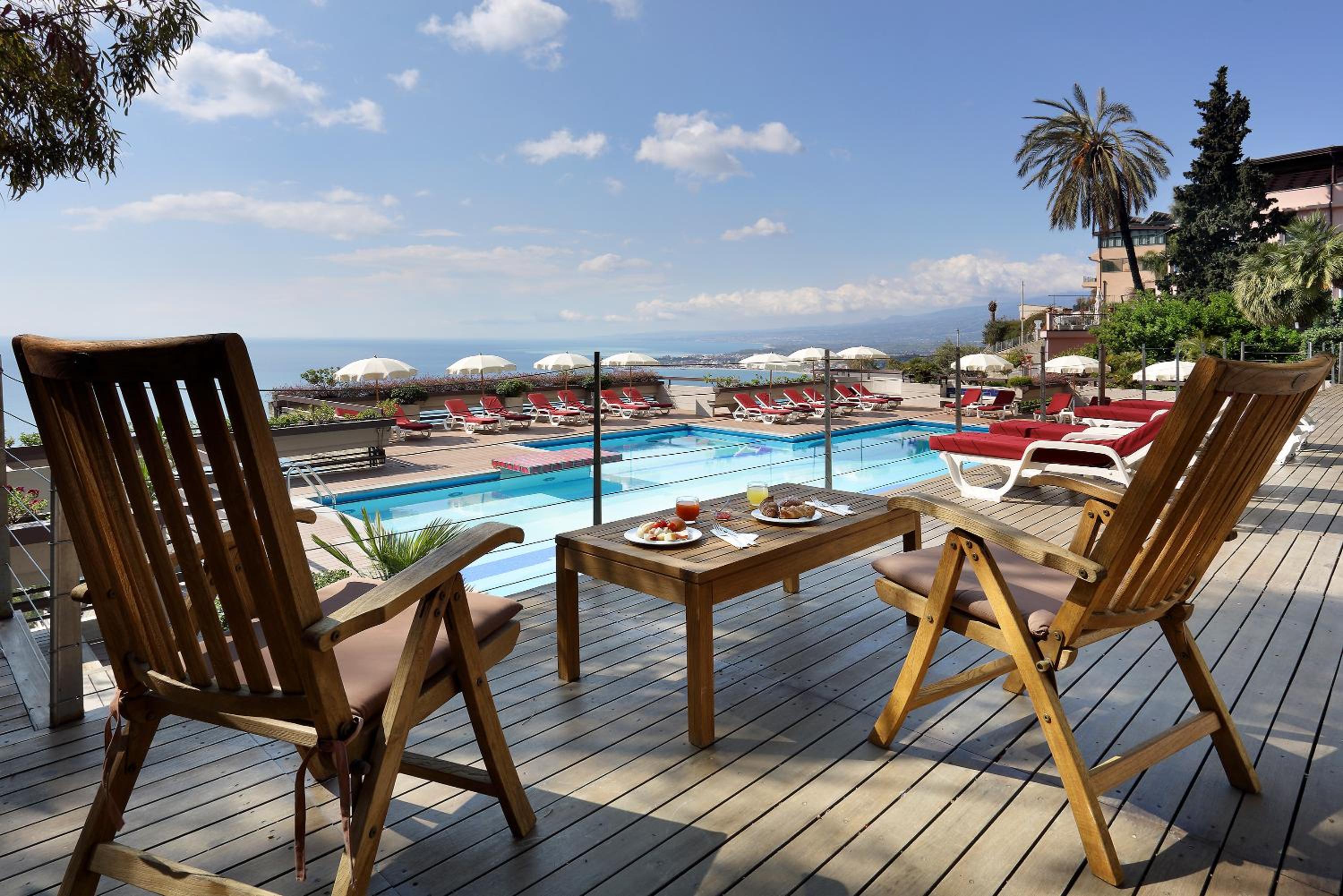 This hotel is prime location in Taormina and the views are breathtaking! Literally minutes away from all the restaurants, main scene of Taormina and right next to Villa Comunale di Taormina. The breakfast was really good, the pool was great and the entire staff, pool included, was wonderful. The guy that works at the pool bar is just a delight! On our first night they gave us a room on the first floor, and I asked if we could be moved to a higher floor. They said that there wasnt any availability that day but they would let us know for the next. Without us reaching out again, the called us first thing in the morning the next day to move us to a room on a higher floor. I thought that was top notch costumer service.