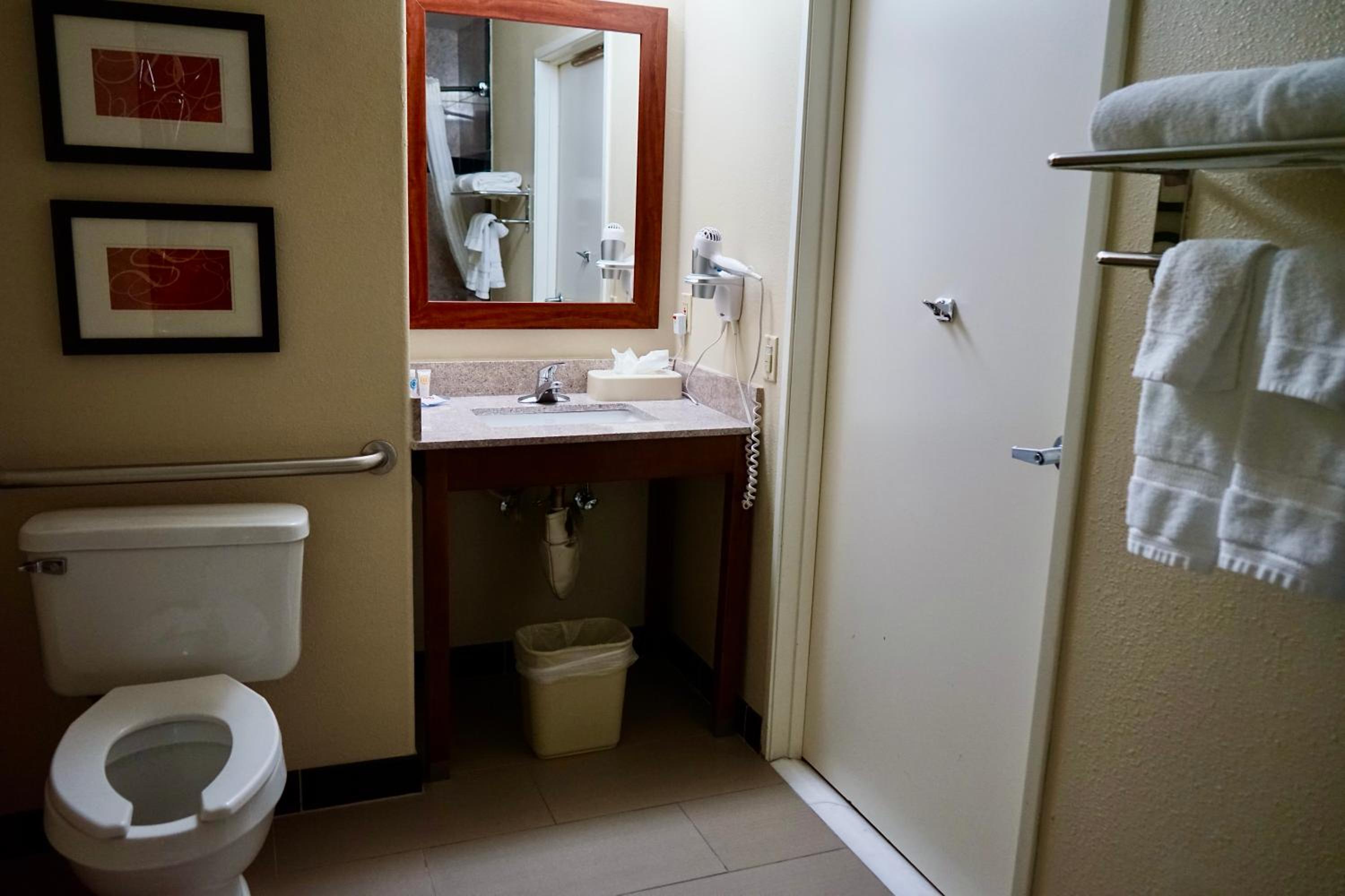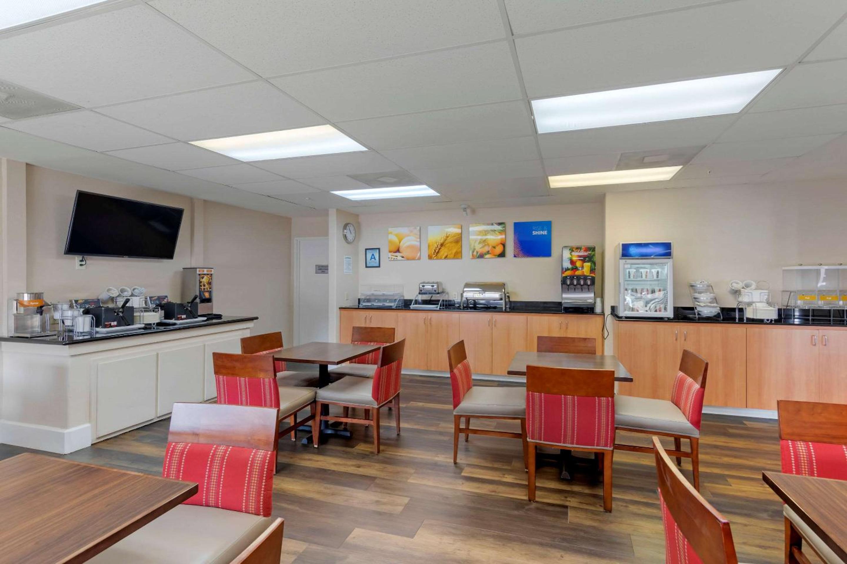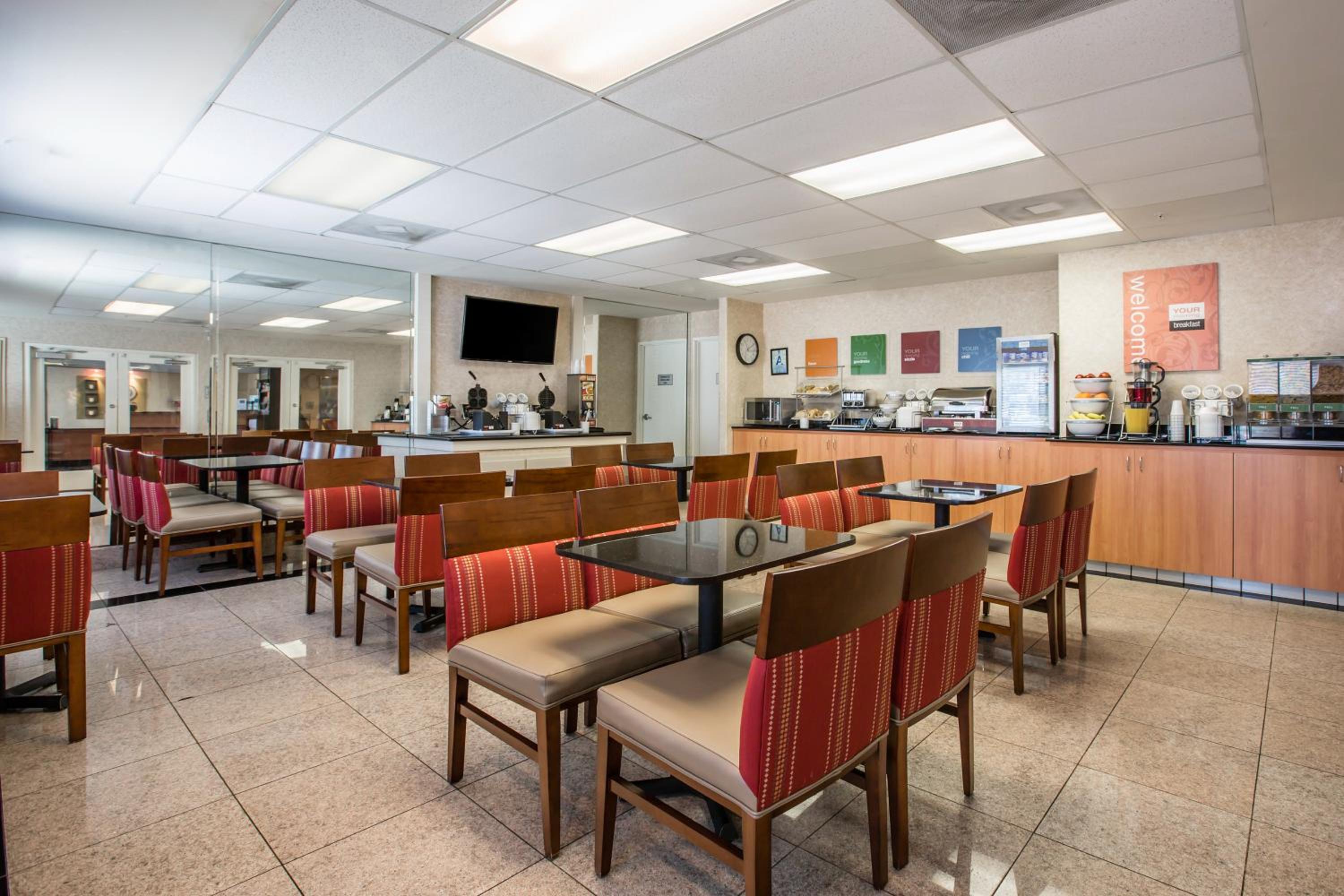 Unwind in our cozy suites equipped with premium linens, a buffet breakfast, and in-room microwave and refrigerator. Take a dip in the outdoor pool, soak in the hot tub, or stay active in the fitness center.
