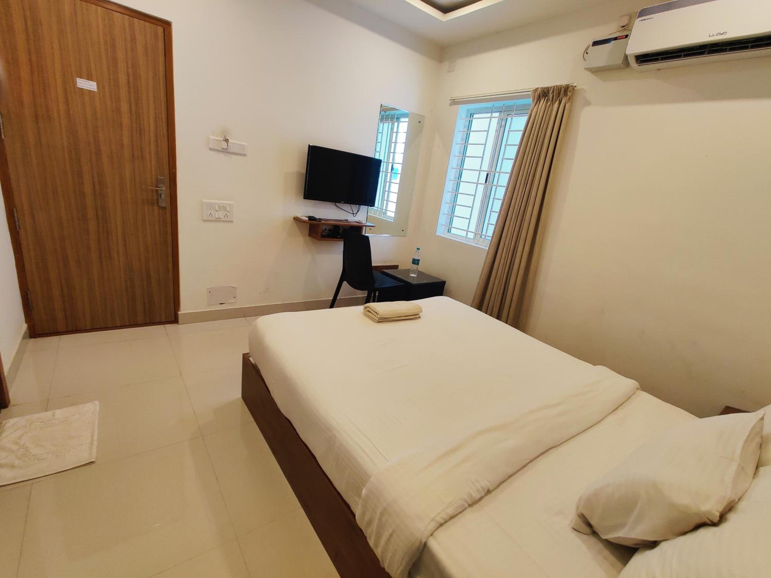 Enjoy a comfortable stay in our air-conditioned rooms equipped with modern facilities such as a flat-screen TV, safety deposit box, and free WiFi. Our 24-hour front desk and room service ensure all your needs are met promptly.