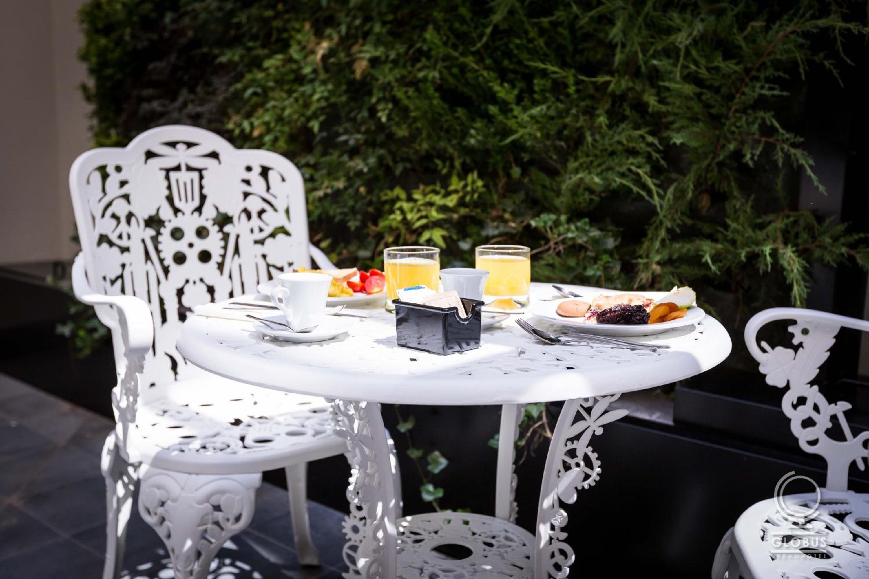 Start your day with a diverse breakfast at Hotel Globus, featuring vegan, vegetarian, organic, and gluten-free options. The perfect way to energize before exploring the city.