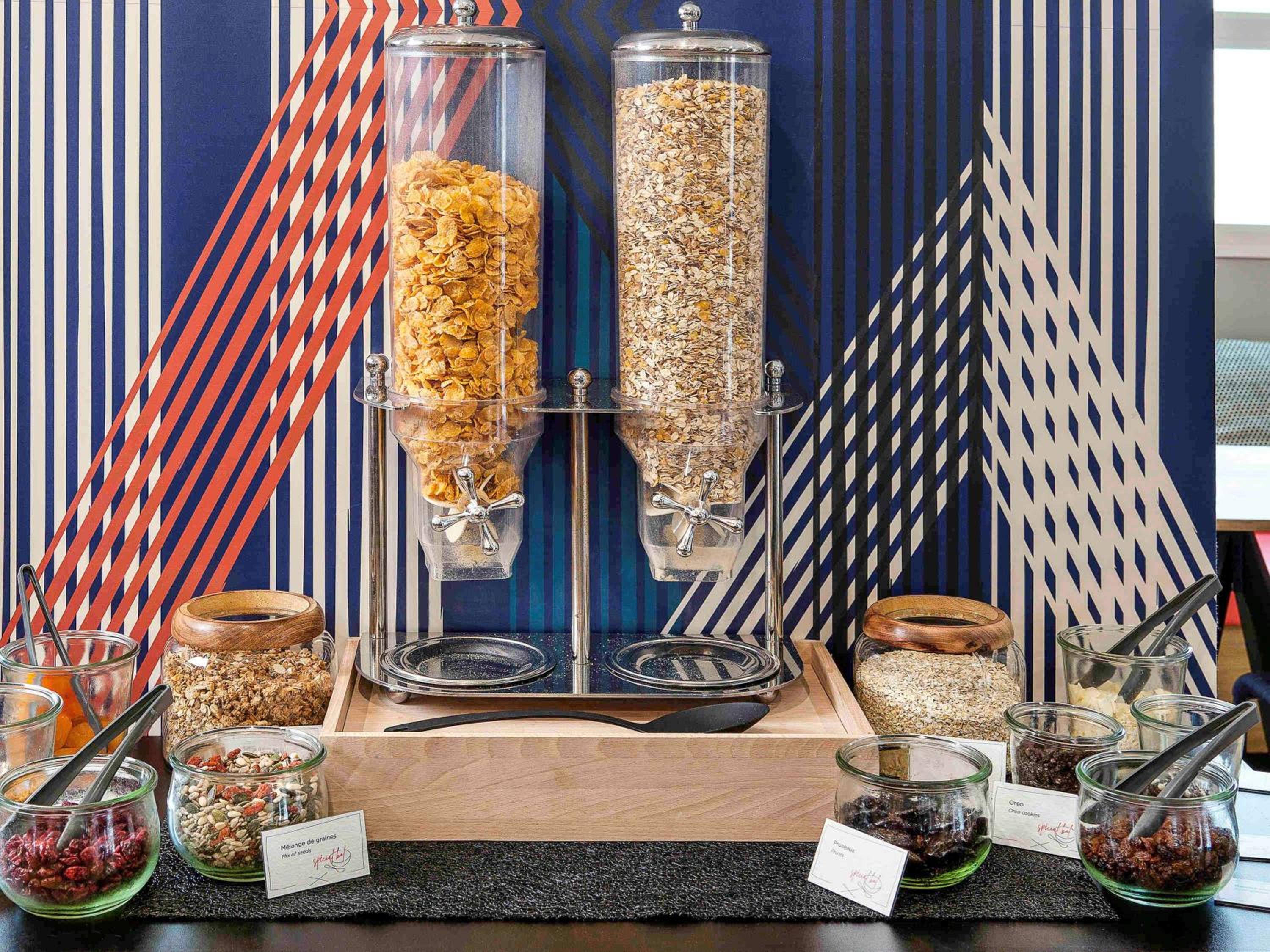 Delicious Buffet Breakfast: Start your day with a variety of sweet and savoury options, including freshly baked pastries, French Madeleine cakes, and a selection of beverages.