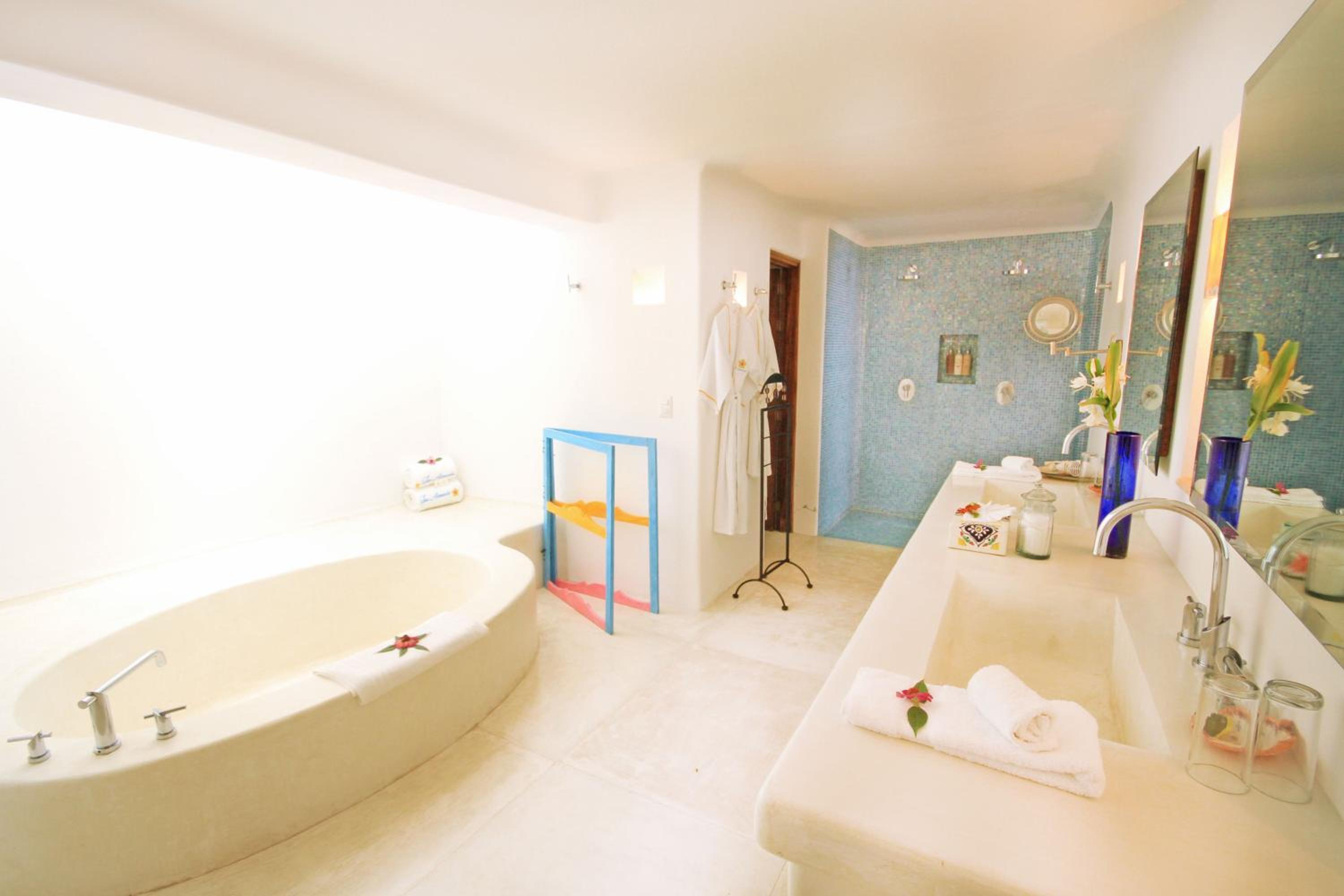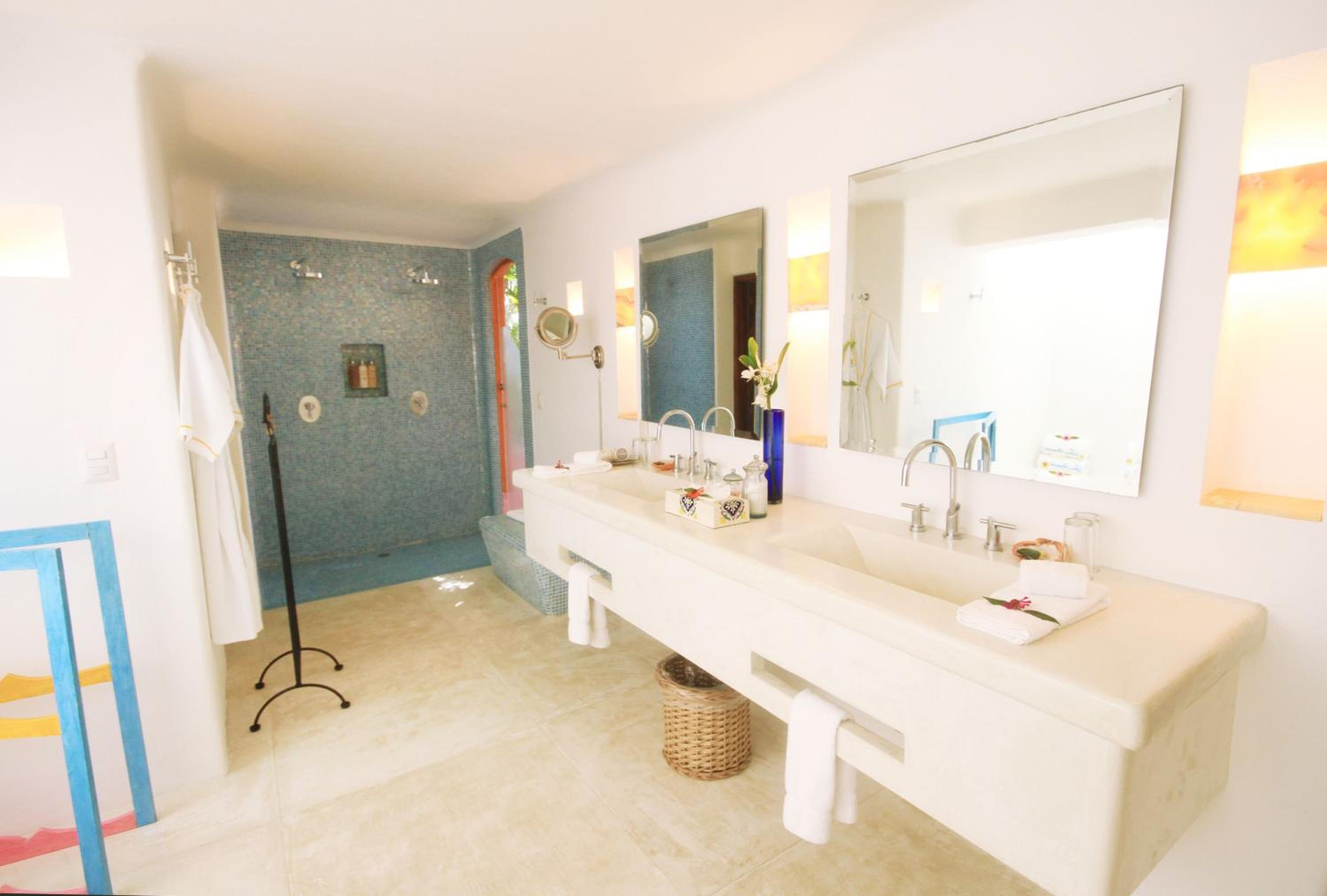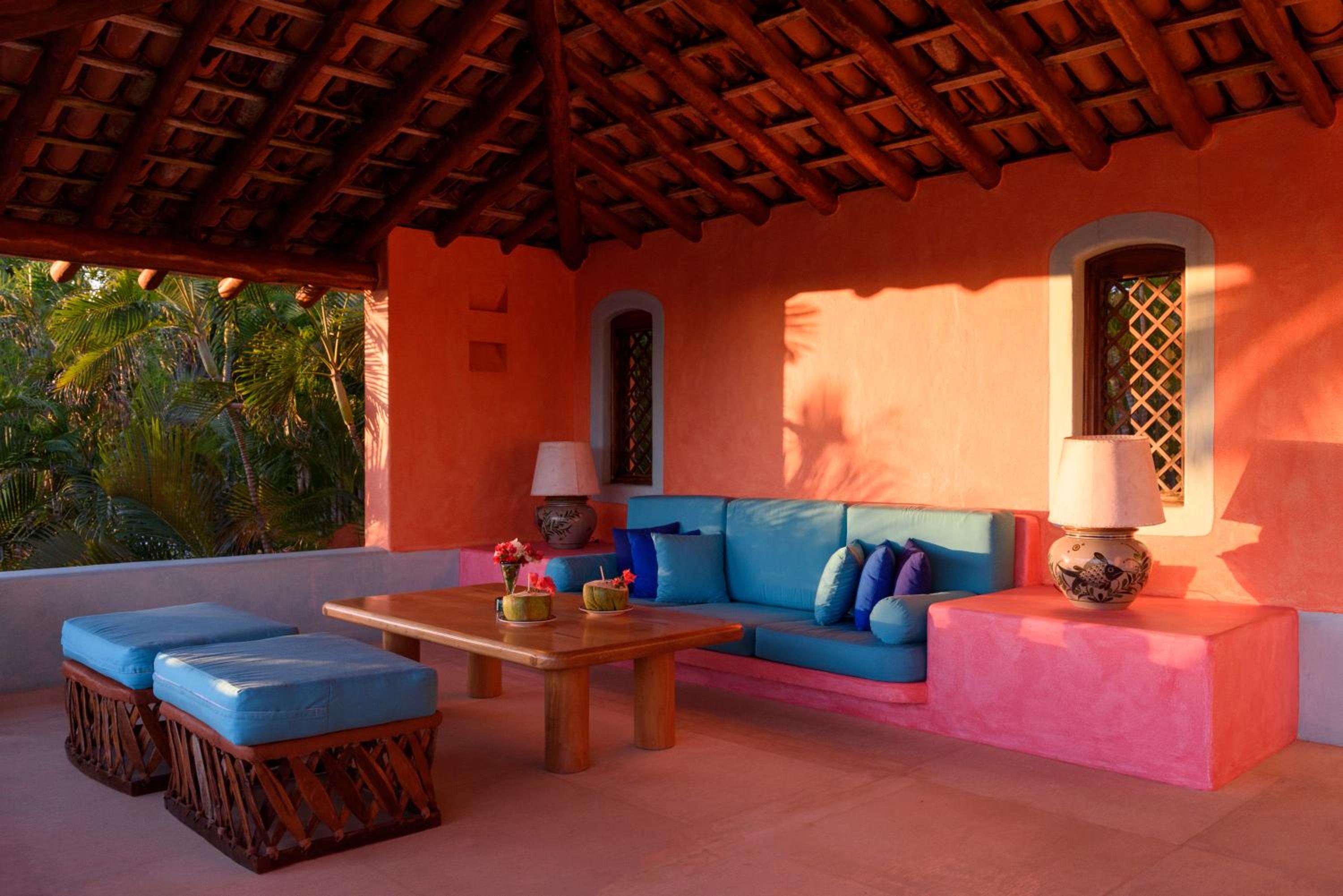 The villas at our resort boast tile roofs, shaded terraces, and elegant white ceramic floors. Each villa is uniquely decorated in vibrant jewel-like colors and a fusion of Mexican designs, fabrics, and crafts. Indulge in a culinary journey at Oasis Restaurant, offering stunning sea views and a diverse menu featuring dishes from around the world, from Asian to Mexican to American cuisine. Complete your dining experience with refreshing drinks at the beach bar.