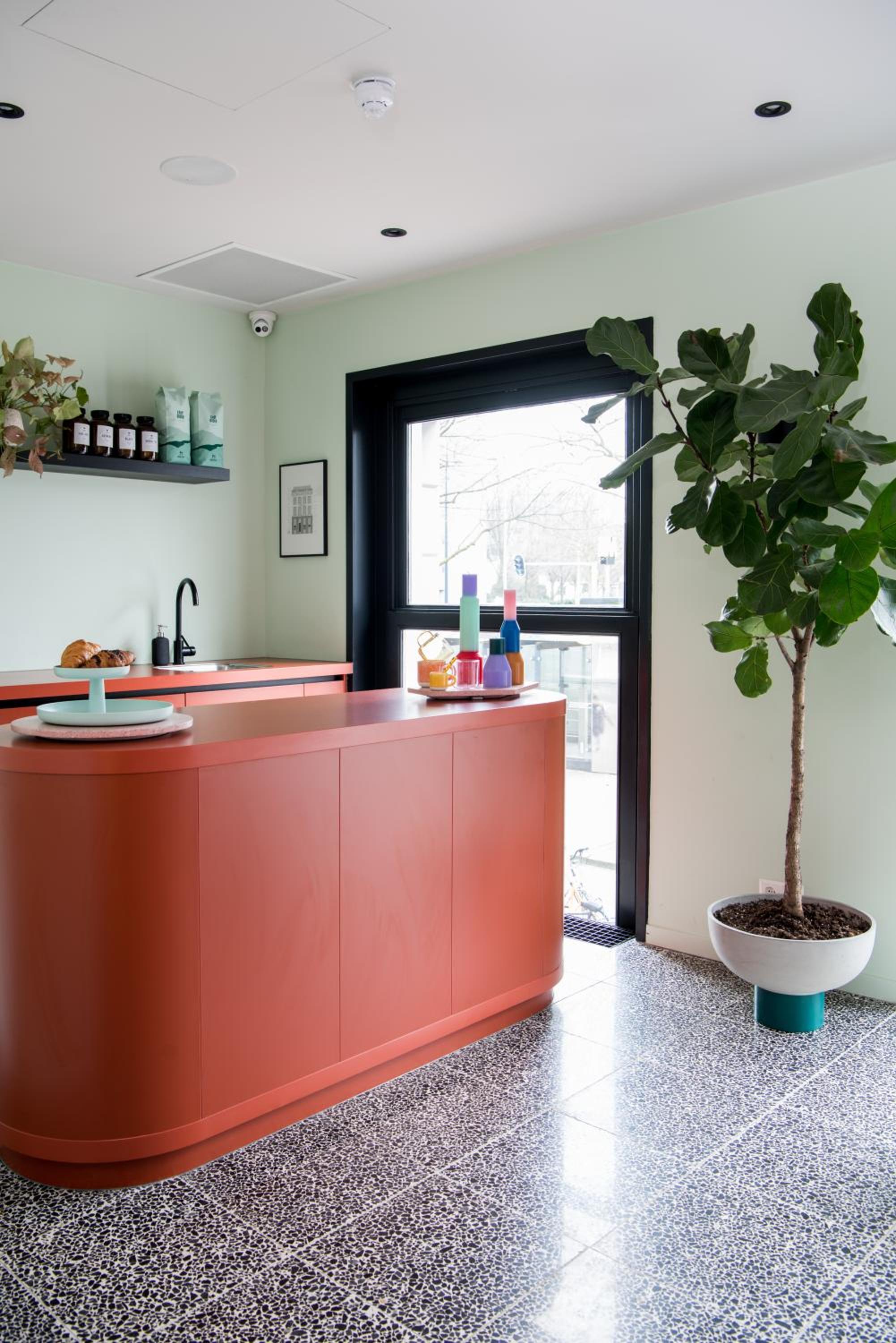 Bij binnenkomst was degene die er zat te werken niet gastvrij. Niet onvriendelijk maar het hield niks over. We hadden 2 kamers geboekt. Op de ene kamer was een stoel naast het bed en de badkamer. De andere, net zo duur, had alleen een badkamer en een bed. Kleine ruimtes! De ene kamer was niet goed schoon. Haar aan de zeeppomp. Bij melden kregen we te horen dat de housekeeping de volgende zou komen maar dan waren we al weg. 'S nachts moet de voordeur open met de app. Was niet gezegd dus dachten dat de kamerkaarten niet werkten.