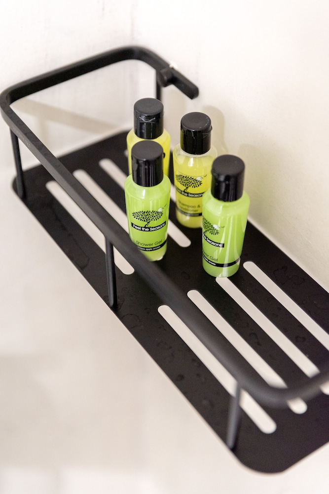 Worth noting that the shower is very small and the floor tends to get soaked. On one occasion it flooded into the kitchen area. I took a window squeedgy which was very handy to use to direct the water into the drains as no mop provided. Also i took over door hooks to hang over the shower cubicle to hang toiletry bags and towels as no shelves or anything to put your toiletries on in the bathroom.
