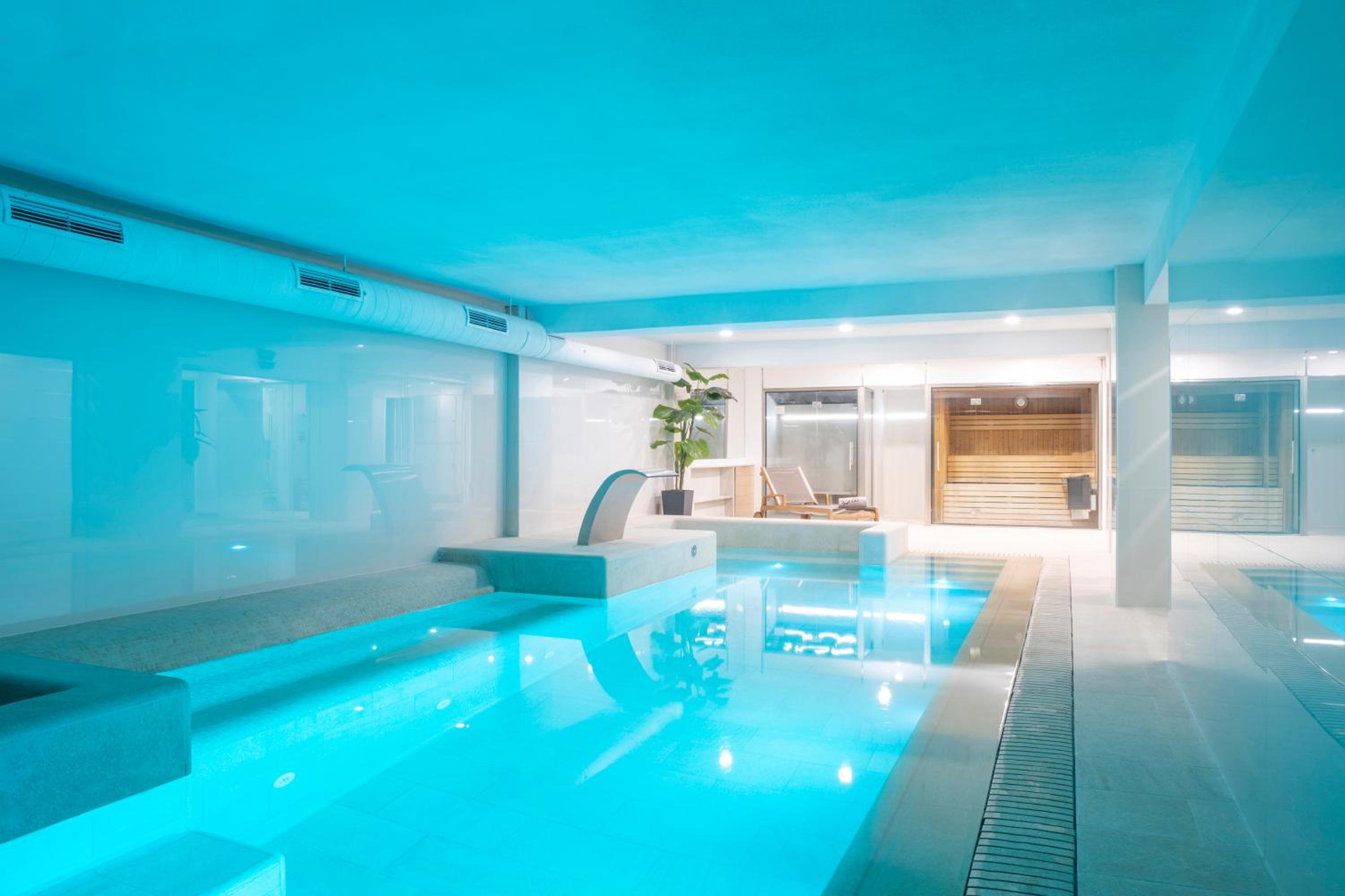 Innside Palma Center offers a range of luxurious amenities including a rooftop terrace with an outdoor pool, gym, indoor pool, hot tub, and Turkish bath.