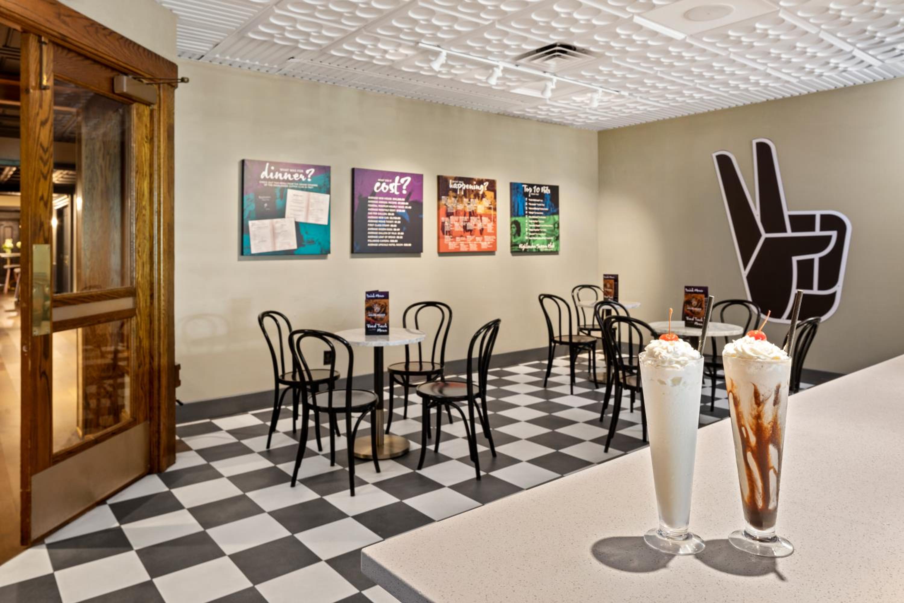 We never had to leave the hotel because they have a cute bar/ restaurant with a game room that was just what we needed. The bartender was so nice and our dinners were good- especially the milkshakes! Front desk staff was professional and accommodating.