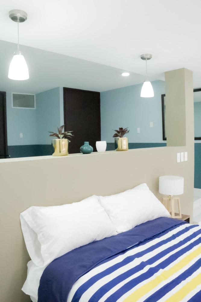 Quede decepcionada la imagen que ponen nada que ver con la realidad, el baño con moho, en el baño no habia para poner ni el jabon ni nada, tuvimos que meter una mesita de centro, el piso levantado, no había cubiertos, el tapete de baño percudido, el colchón no es cómodo, cortinas fatales, el ruido del movimiento vehicular desde muy temprano no te deja descansar